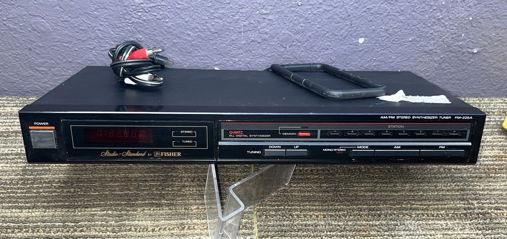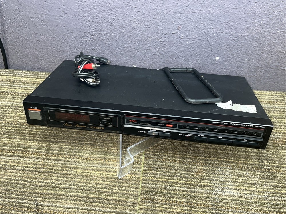 This vintage Fisher FM-225A Studio Standard AM FM Stereo Synthesizer Tuner is ready to bring high quality sound to your home audio setup. With support for both FM and AM modes, you'll have access to a wide range of radio stations. Additionally, the tuner is compatible with a variety of audio setups thanks to its brand, Fisher, and its model, FM-225A. This tuner is in good working order and can bring your music and radio stations to life. Whether you're a lover of vintage audio equipment or you're just looking for a reliable tuner, this Fisher FM-225A is a great option. Comes as shown in photo Fast shipping