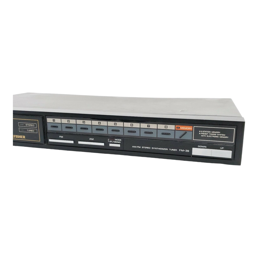 Vintage Fisher FM-39 Stereo Tuner AM/FM Stereo Synthesizer Enhance your audio experience with this Vintage Fisher FM-39 Stereo Tuner, a classic AM/FM stereo synthesizer perfect for audiophiles looking to build a high-end component system. Designed with durability and quality in mind, this tuner reflects the artistry of stereo equipment from its era. While it may not be perfectly pristine all around, it retains its charm and will make a stylish addition to any stereo stack. The FM-39 is known for its reliable performance and rich sound quality, making it a valuable component for music enthusiasts. Key Features: Brand: Fisher Model: FM-39 Type: AM/FM Stereo Synthesizer Durability: Built to last, embodying the craftsmanship of vintage audio equipment. Condition: Not perfectly pretty, but functional and aesthetically pleasing as part of a stereo setup. Perfect for collectors and those who appreciate vintage audio gear, this Fisher FM-39 tuner is just what you need to elevate your listening experience!