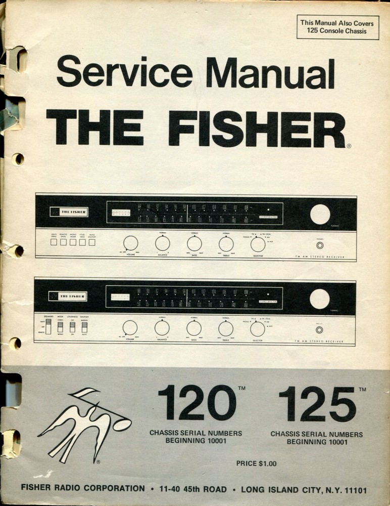 Vintage Fisher 120/125 FM/AM Stereo Receiver Service Manual Serial 10001+