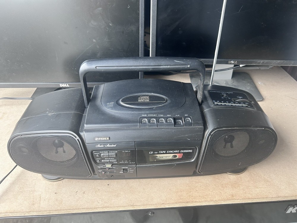 This vintage Fisher boombox is a fantastic blast from the past! The AM/FM radio works perfectly, and both the cassette and CD players function smoothly—great for retro music lovers. The sound quality is surprisingly crisp for its age, and the portable design makes it easy to move around. Even without batteries or included media, it’s a steal for collectors or anyone craving nostalgic vibes. Highly recommend!