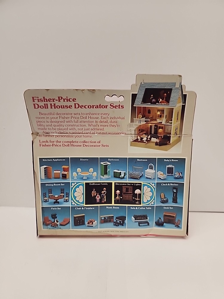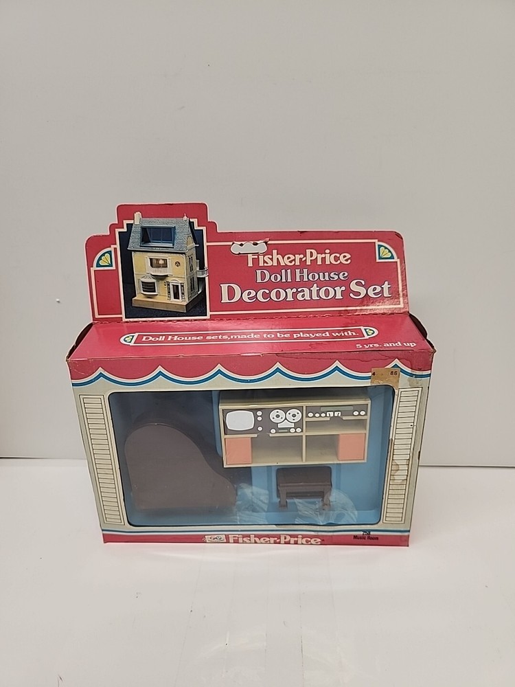 Enhance your child's imagination with this vintage Fisher Price Dollhouse Decorator Set #258. The set includes a music room with a piano, seat, and stereo to create a miniature concert hall. This accessory is perfect for children aged 3-7 years old who love to play and create their own tiny world. Crafted in Hong Kong in 1977/1981, this Fisher Price accessory is a rare find for collectors and enthusiasts of preschool toys. The set is designed for the DOLLHOUSE MINIATURE character family and can be a great addition to your child's toy collection.