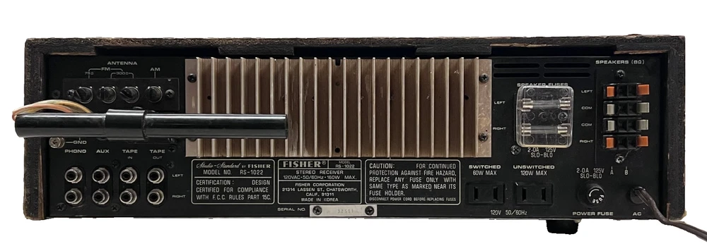 Our Restoration Procedures: 1. Check Out The Stereo, If There Is Anything Wrong, We Will Fix It. 2. Clean & Lubricate All Of The Switches & Controls. 3. Electrolytic Capacitor Check, If There Is Any Weak One, We Will Change It. 4. FM IF & MPX Circuit Alignment By Using A Sweep Signal Generator & Victor Scope. 5. Change Burned Lamps. 6. Check Out & Adjust Power Amplifier's Center Voltage & Standby Current. 7. Audio Frequency Response & Distortion Test. 8. Clean All Of The Knobs By Ultrasonic Cleaner. 9. Functional Check. 0. All Sales We Give A 90-Day Labor & Parts Warranty, If There Is Any Problem, You Send It Back We Will Repair It For You Free Of Charge, You Pay The Send-In Postage, We Pay The Send-Back Postage. Specifications Tuning range: FM, MW Power output: 20 watts per channel into 8Ω (stereo) Frequency response: 20Hz to 20kHz Total harmonic distortion: 0.5% Input sensitivity: 2mV (MM), 150mV (line) Signal to noise ratio: 60dB (MM), 70dB (line) Channel separation: 40dB (line) Dimensions: 17 x 19 x 5 inches
