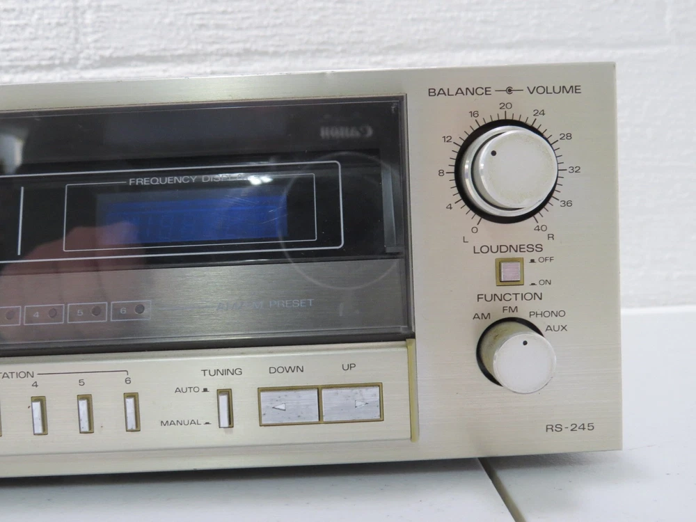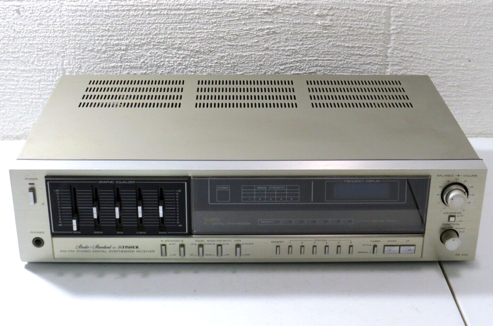 Unit is tested and working Immerse yourself in the classic sound of vintage radio with the Fisher RS-245 Studio Standard AM/FM Stereo Receiver. A testament to timeless design, this silver gem hails from Japan, renowned for its precision engineering and quality craftsmanship. The elegant Fisher RS-245 offers a nostalgic nod to the past, while delivering the clear and crisp audio performance that enthusiasts and collectors alike have come to appreciate. Whether you're tuning in to your favorite AM or FM stations, this receiver promises an unparalleled listening experience. Not just a piece of history, the RS-245 is a working piece of art, blending seamlessly into any room or collection. Its legacy and functionality make it a standout choice for those who cherish the intersection of audio quality and vintage aesthetics.