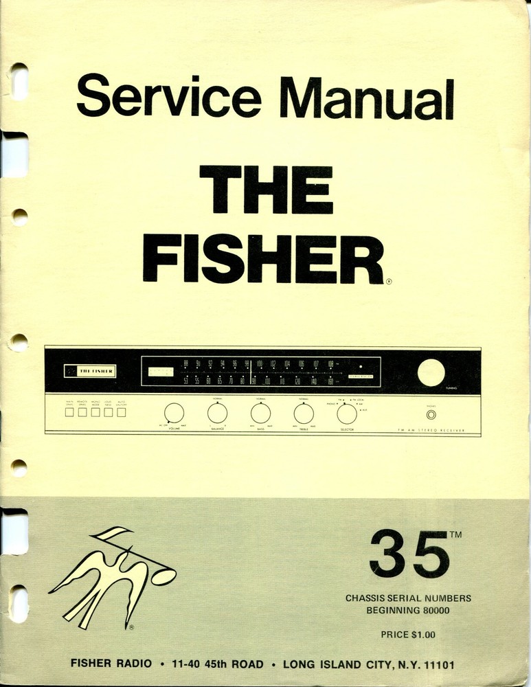 Vintage Fisher 35 FM AM Tuner Service Manual Supplement
