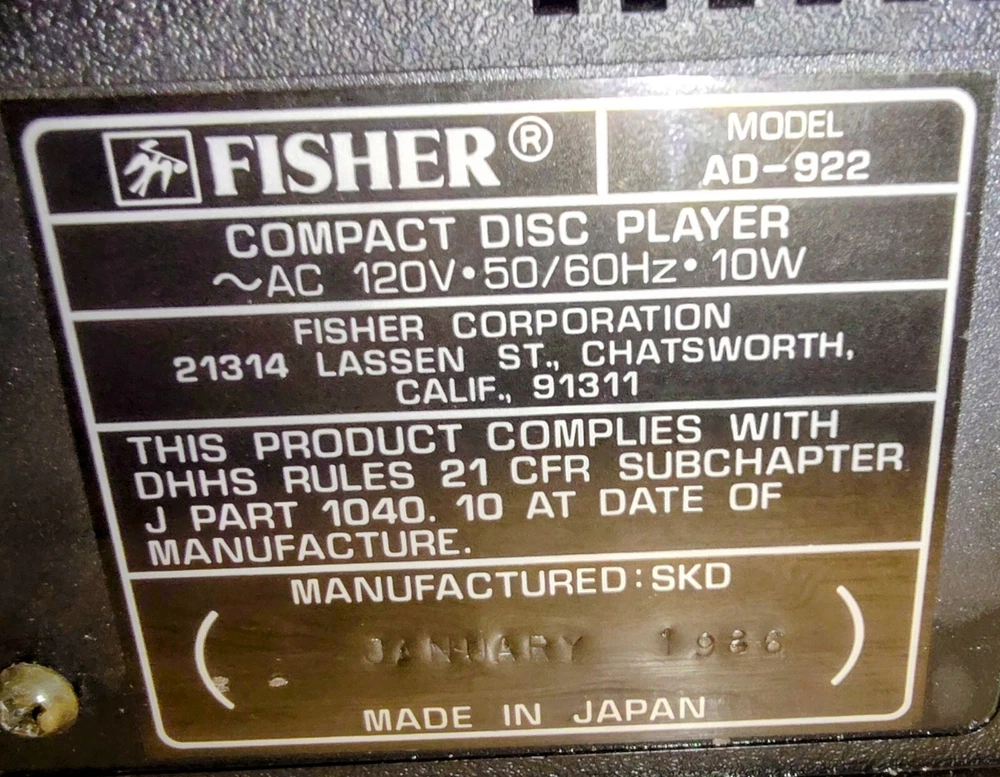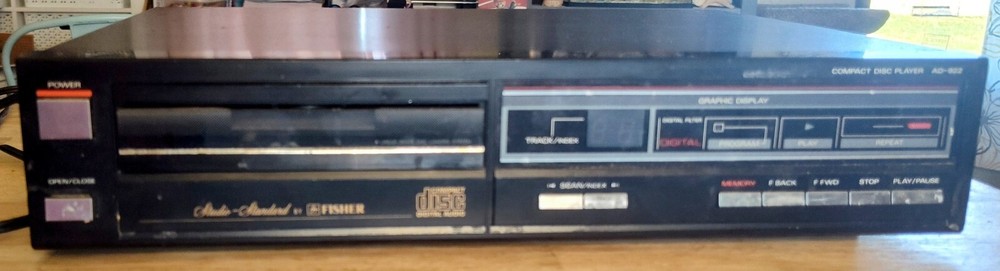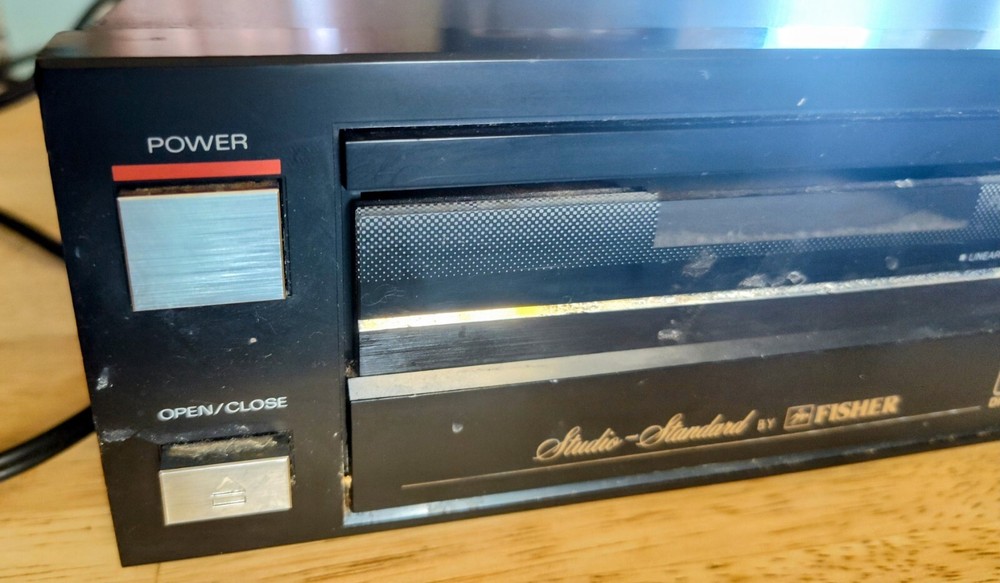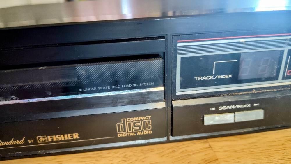 Vintage Fisher CD player. Does work. Shows alot of scratches on the case. Needs a more thorough cleaning. If you have any issues with your item please contact me so that I can communicate with you. I strive to sell items with an accurate description. Please always read the description and look through all of the photos and zoom into them to best see the item's condition. I buy many items from Indiana estates and surrounding areas. Please use your collecting knowledge to determine the item you are buying. I am not an expert in everything and am always learning. Also if you see an error in my listings don't be afraid to let me know. I always appreciate your expertise. Thanks so much for looking at my items for sale!