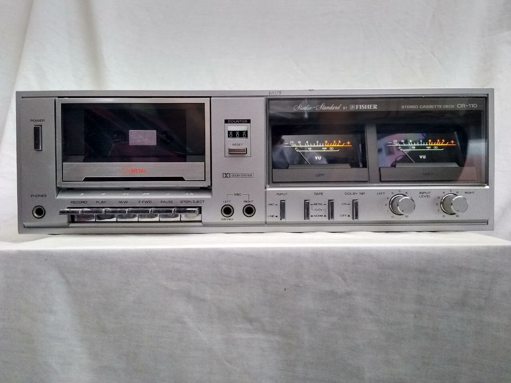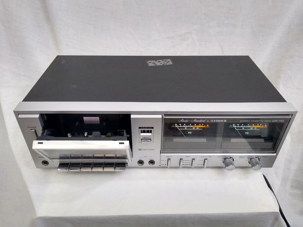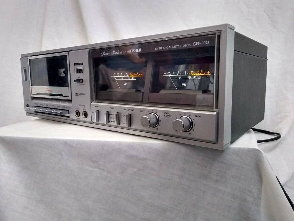 Experience the charm of vintage audio with the Fisher Studio Standard CR-110 Stereo Cassette Deck. Crafted with precision in Japan, this classic unit reflects the enduring quality of Fisher brand electronics. The CR-110 model, known for its reliability and straightforward operation, offers a nostalgic trip back to the era of mixtapes and high-fidelity sound. Ideal for both collectors and enthusiasts, this cassette deck serves as a testament to the era when analog ruled supreme. The unit comes ready to power on, allowing you to connect to your existing stereo system and enjoy the rich, warm sounds of vinyl and cassettes. Embrace the simplicity and elegance of a bygone audio age with this Fisher CR-110. All of the functions work including the VU meters. Play, plays for about 20 secs. then stops. I don't know the issue there. Other than that, the unit is in great condition.