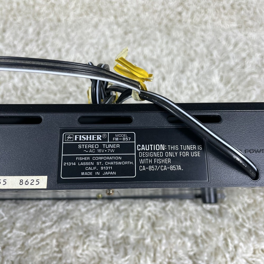DESCRIPTION: VINTAGE FISHER AM/FM STEREO SYNTHESIZER TUNER. INTENA AC POWER CABLE ONLY COMPATIBLE WITH FISHER CA-857 CA-857A CONDITION: SHELL HAS A FEW SCRATCHES, THE LONG ONE ON THE TOP AND ONE ON THE LEFT SIDE WALL. DEVICE HAS NOT BEEN TESTED, I DO NOT HAVE A FISHER CA 857 INTEGRATED STUDIO AMPLIFIER. IF DEVICE DOES NOT WORK I WILL ALLOW RETURNS. ONLY IF DEVICES DOES NOT TURN ON.