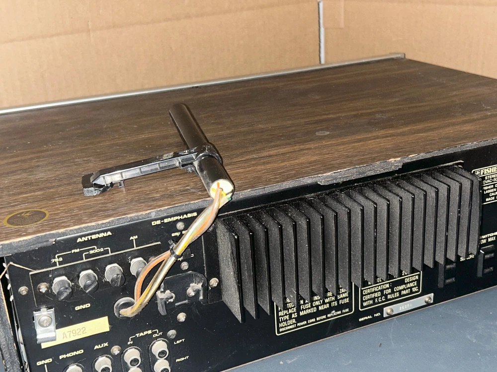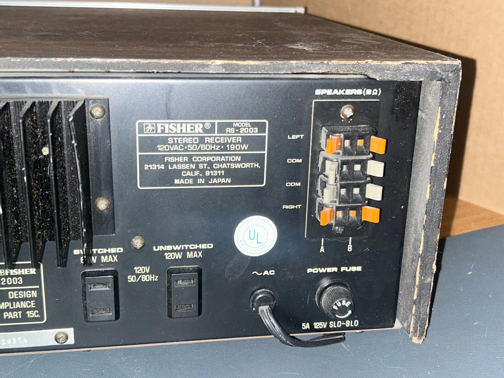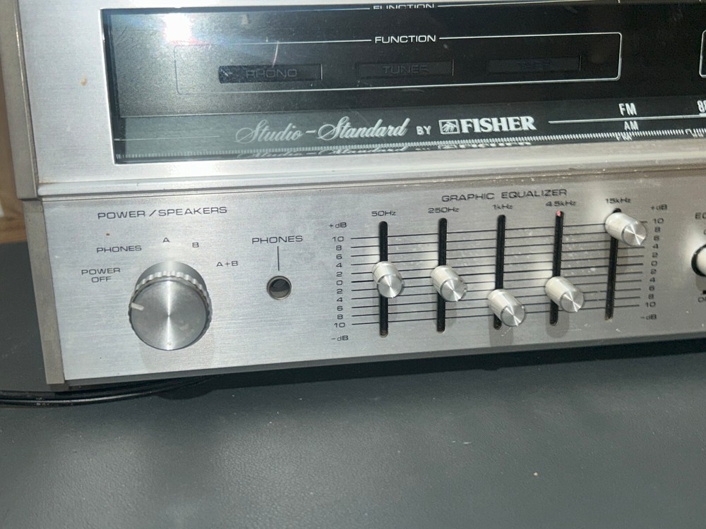 HERE I HAVE A Vintage Fisher Studio Standard Receiver Stereo RS-2003. TWO OF THE KNOBS NEED TO BE CONNECTED RIGHT TO WORK PROPER BUT I USUALLY USED A QUARTER TO POWER IT UP OR CHANGE IT FROM AUX TO AM OR ANY SETTING. PLEASE REFER TO PHOTOS TO SEE WHAT IS INCLUDED AND ITS COSMETIC CONDITION; WHAT YOU SEE IS WHAT YOU GET. IF YOU HAVE ANY QUESTIONS PLEASE DON'T HESITATE TO ASK. THANKS FOR LOOKING! I ACCEPT PAYPAL- PAYPAL CONFIRMED ADDRESS PREFERRED - I SHIP E VERY MONDAY, WEDNESDAY AND FRIDAY OF THE WEEK; PLEASE BE PATIENT YOUR ITEM WILL BE SHIPPED AS SOON AS POSSIBLE. SORRY NO INTERNATIONAL TRANSACTIONS ALSO NO SHIPPING LARGE ITEMS TO P.O. BOXES, ALASKA, HAWAII APO, PUERTO RICO or FPO. WILL ONLY SHIP TO THE LOWER 48 STATES