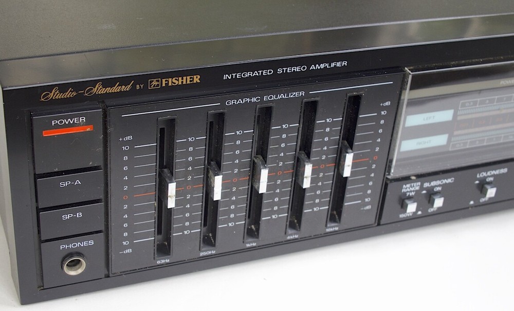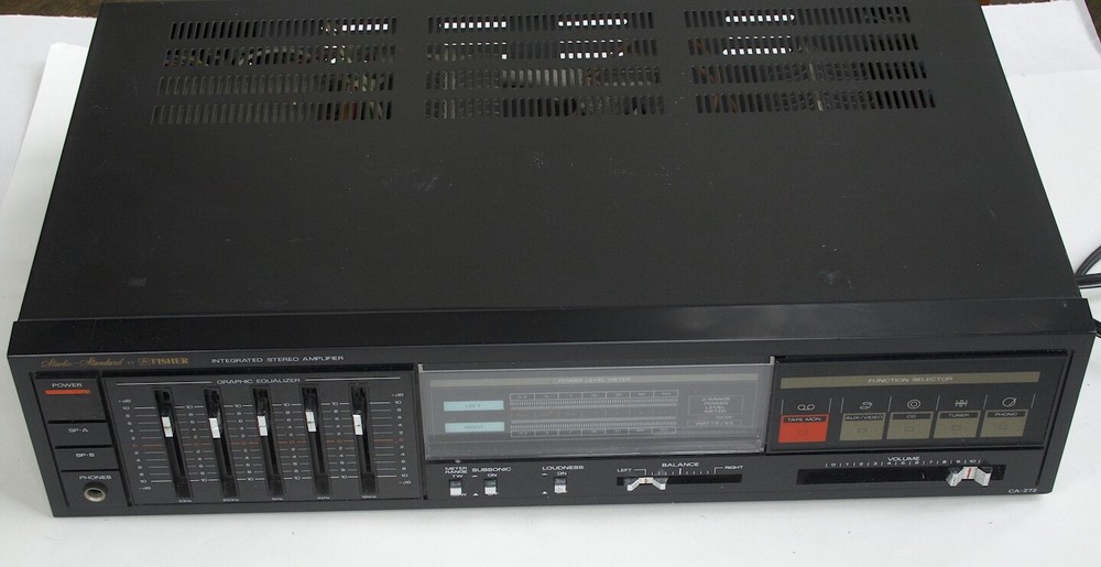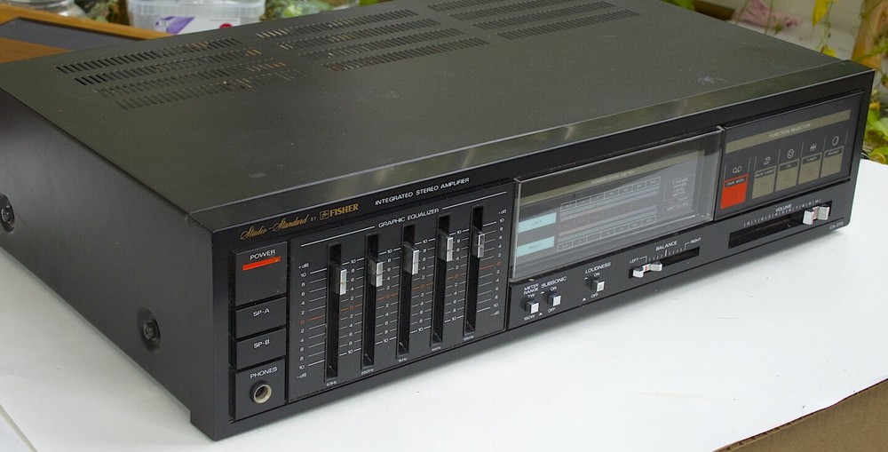 Vintage Fisher Studio Standard Stereo Integrated Amplifier for restoration It has not been used for the last twenty years, generally clean, please refers to the photos, for restoration, for parts or repair etc. Sliding pots setting on the faceplate was caused by wife's cleaning rather than working status. It is being sold for restoration anyway. No returns. Size is about 16.5 x 9.5 x 3.5 inch. this Japanese origin item was designed with metric length in mm, so the inch size is about rounded numbers.