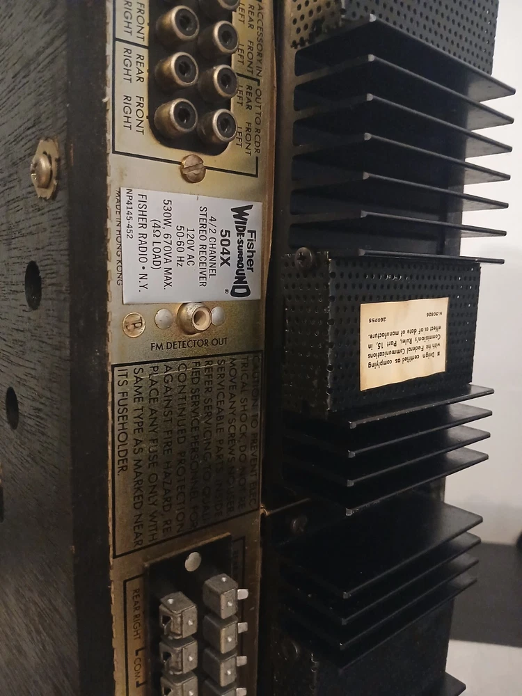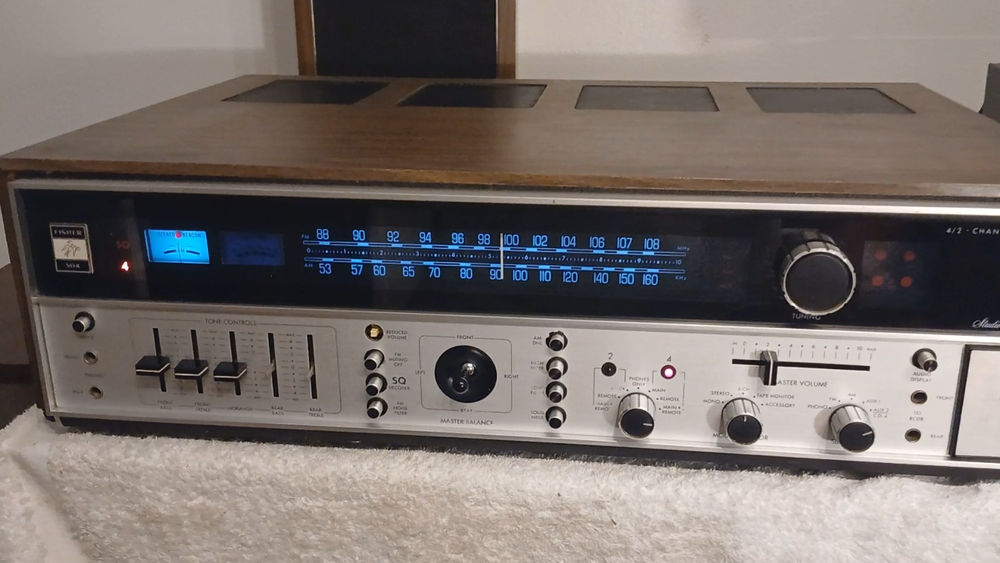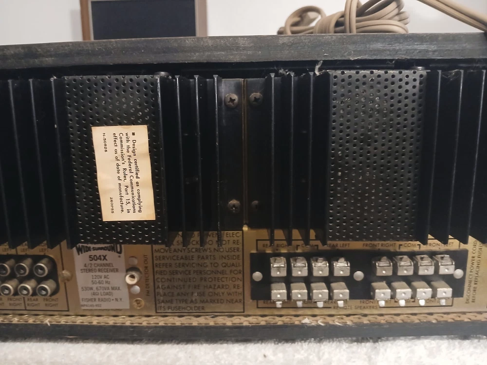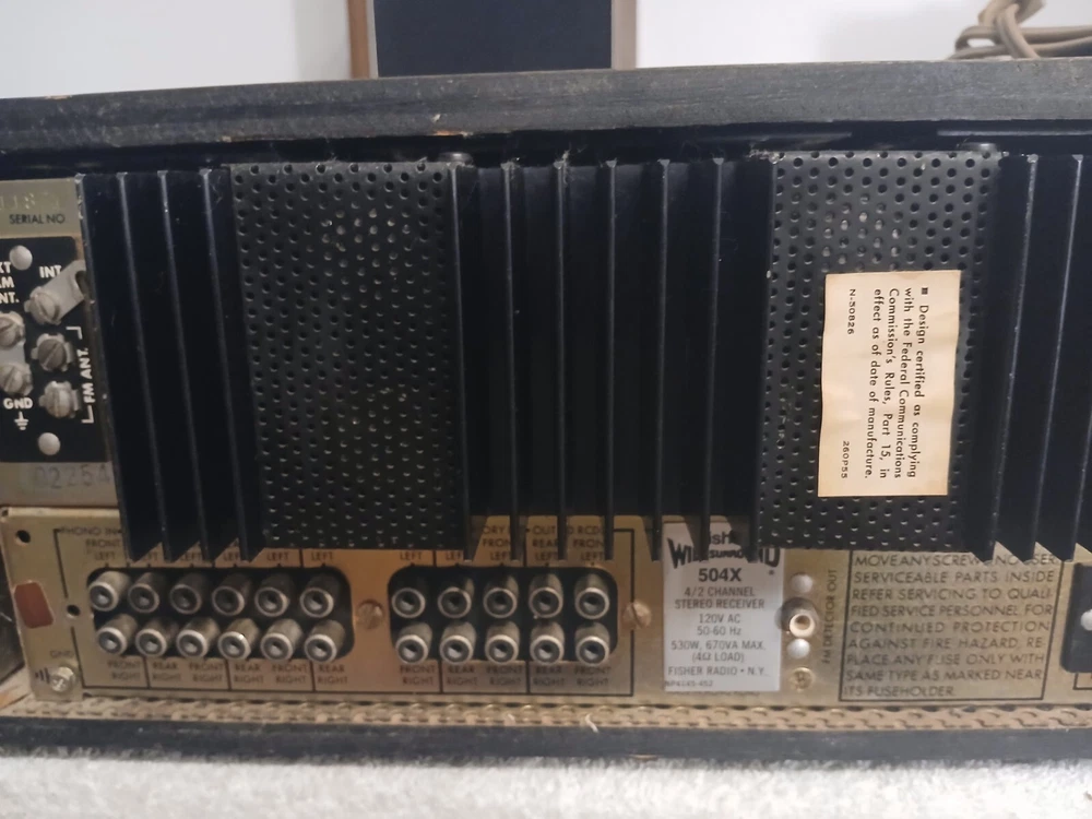 Elevate your audio experience with the Vintage Fisher Wide-Sound 504X Stereo Receiver. This classic piece of audio equipment, crafted in the United States, boasts a robust design and an intuitive user interface, making it a dream for both audio enthusiasts and casual listeners alike. The 504X model is a testament to the enduring quality of Fisher's commitment to superior sound. With its integrated amplifier design, this receiver ensures a seamless and powerful audio reproduction, perfect for any music lover's collection. Whether it's a vintage rock album or a modern-day hit, the Fisher Wide-Sound 504X will bring your tunes to life with clarity and depth. Check out the accompanying video and pictures for a closer look at this exceptional piece of audio history. Please look at the pictures & Video for overall condition. I will ship National & international! Sold as is! Thank you for looking. Specifications Tuning range: FM, MW Power output: 52W/ch into 4Ω (quadraphonic) Frequency response: 20Hz to 20kHz Total harmonic distortion: 0.5% Input sensitivity: 2.7mV (MM), 200mV (line) Output: 200mV (line) Solid State / Tubed Solid State Power 4-Ch: 40 Watts / Channel @ 8 Ω (1) 2-Ch: 110 Watts / Channel @ 8 Ω (1) 4-Ch: 32 Watts / Channel @ 8 Ω (2) 4-Ch: 40 Watts / Channel @ 4 Ω (2) 2-Ch: 90 Watts / Channel @ 8 Ω (2) Number of Channels 4 (1) Frequency Response 10 Hz - 52 kHz (1) Power Bandwidth 20 Hz - 20 kHz (1) Total Harmonic Distortion 0.5 % (1) Intermodulation Distortion 0.8 % (1) Signal-to-Noise Ratio 58 dB (Phono) (1) Sensitivity 2.7 milliVolts (Phono) (1) Tuner Sensitivity 1.8 microVolts (1) Tuner Capture Ratio 1.2 dB (1) Tuner Total Harmonic Distortion 0.5 % (Mono) (1) Tuner Stereo Separation 38 dB (1) Dimensions (W x D x H) 21.5 x 16.75 x 6.75 in. (1) [54.61 x 42.55 x 17.15 cm] Weight 43 lbs. (1) [19.52 kg]
