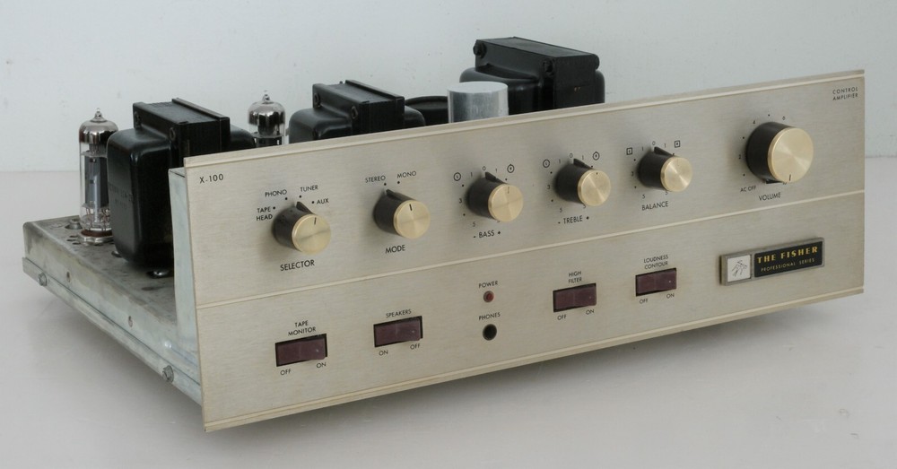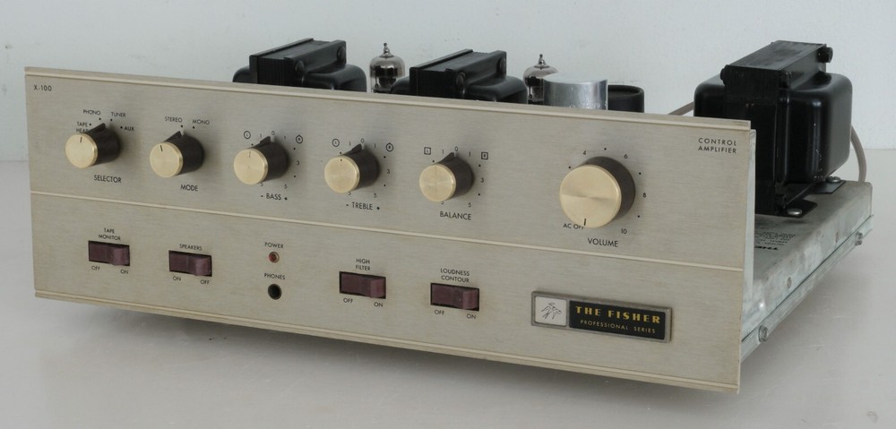 Vintage Fisher X-100-2 Stereo Integrated Amplifier Good Working Condition!!! Up for sale is a good working order Vintage Fisher X-100-2 Stereo Integrated Amplifier . As the photos show, this is in fair to good condition for its age. It has scratches and nicks. A part of the hole for inserting the shaft of the volume knob is damaged, but there is no problem adjusting the volume. See the last picture for this. Lamp does not work. I tested tubes on my TV7B/U tube tester. 1. ECC83/12AX7A : Sovtek 12AX7WXT+ ( New, Triple Mica ) 2. EL84/6BQ5 : Sovtek EL84/6BQ5 ( New Matched Quad ) Please look at all the pictures for an over all condition, before bidding. All items are offered for sale locally therefore listings may end without notice ( CList ). What you see is exactly what you get. Please see the photos for condition details and judge for yourself. All items are sold in the condition shown in photos and "as is" condition, with no warranties. If you have any questions please email me. No returns please! Shipping to Continental United States Only (48 States). Thank You for looking, and good luck with your bids!!!