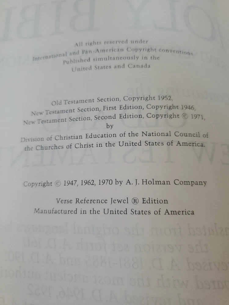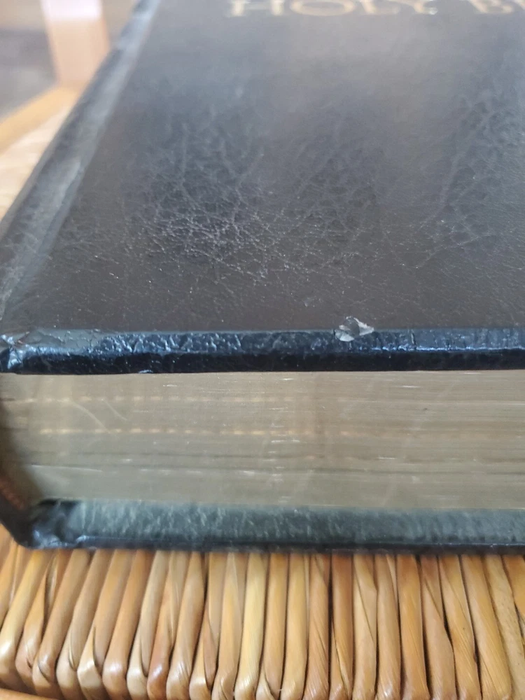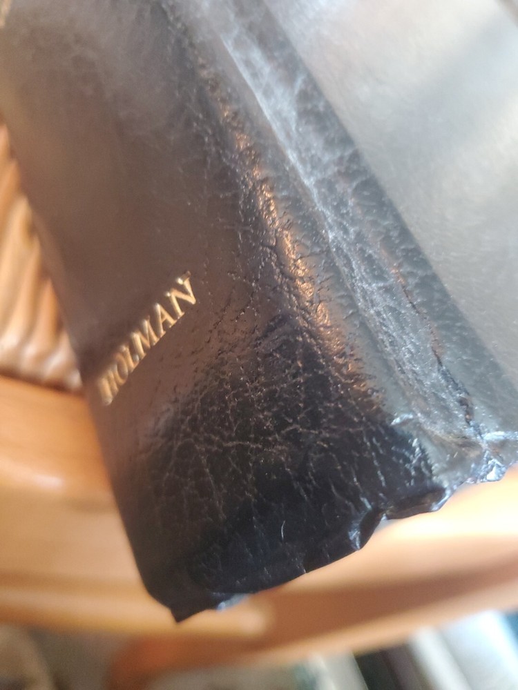 This book is giant and the covers feel like wood solid. This vintage Holman KJV Holy Bible is a true treasure for collectors and enthusiasts alike. With a jewel verse reference and leather bound cover, it exudes elegance and style. Published in 1970 by A.J. Holman, this Bible is a beautiful addition to any spiritual collection. The King James Version of The Bible, featuring topics on Jesus, spirituality, and religion, is perfect for those seeking knowledge and guidance. The book title and series are simply "The Bible," making it a classic and timeless piece. This item was manufactured in the United States and is in excellent condition.