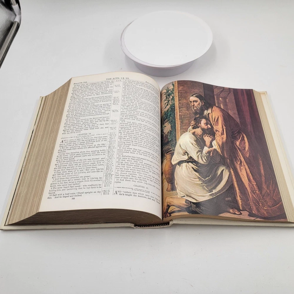 This vintage Holy Bible Family Record & Library Reference Edition Red Letter Crusade is a timeless treasure for any book collector. The hardcover format and leather bound cover make it a durable and beautiful addition to your library. The book features illustrations that bring the narrative to life and make it easy to follow along. With its English language and nonfiction narrative type, this book is a must-have for anyone interested in reference materials. The book's author is the Holy Bible, and it covers a wide range of topics related to religion. The Crusade publisher has done an excellent job of presenting this information in a easy-to-read format. This book is perfect for anyone looking for a comprehensive and informative read on the topic of religion.