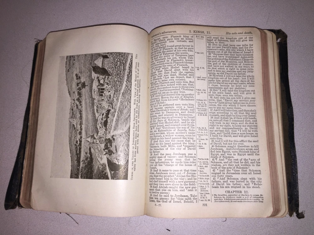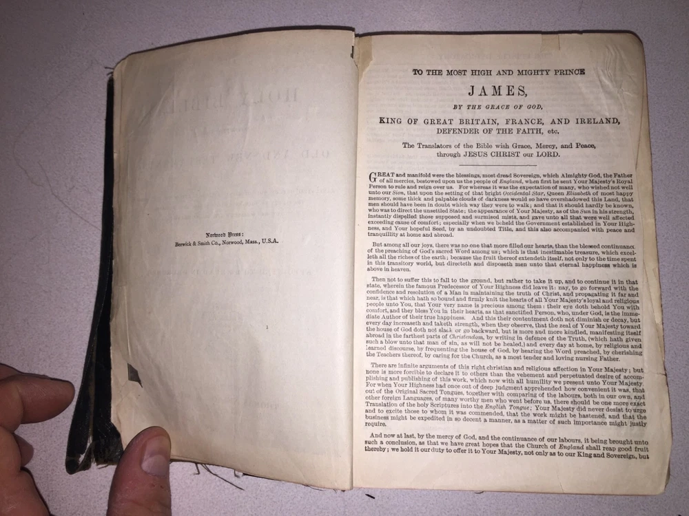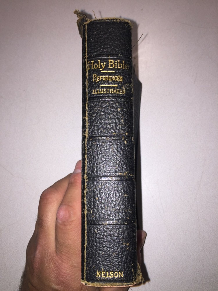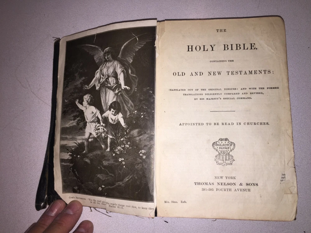 Vintage Holy Bible published by Thomas Nelson & Sons, printed by Norwood Press. Illustrated with References, "Appointed to be Read in Churches." Leather binding, heavily worn. See photos.