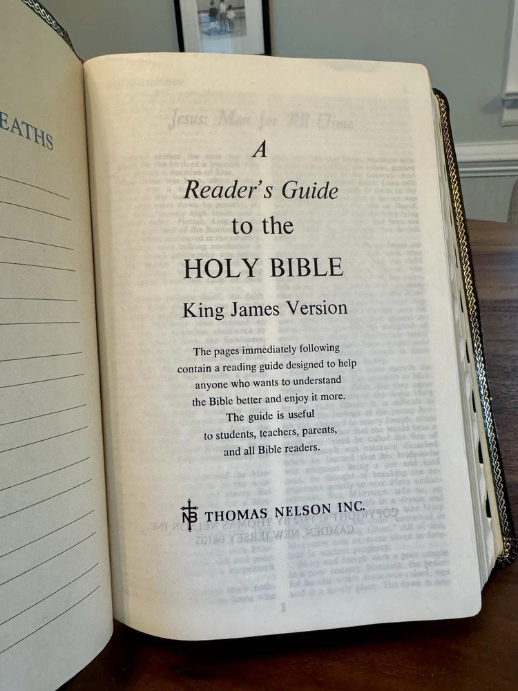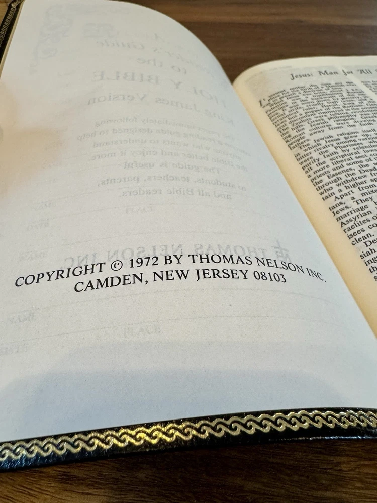 This is a gorgeous old bible in perfect condition. Owner’s name was written in but none of the other pages were (marriages, family tree, etc). The words of Christ are in red in this bible. Please photos for a closer look. Ships from a smoke free dog friendly home. Thank you!