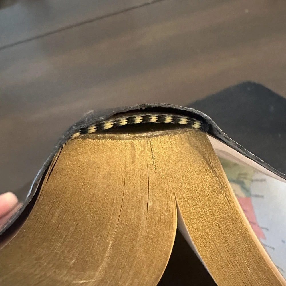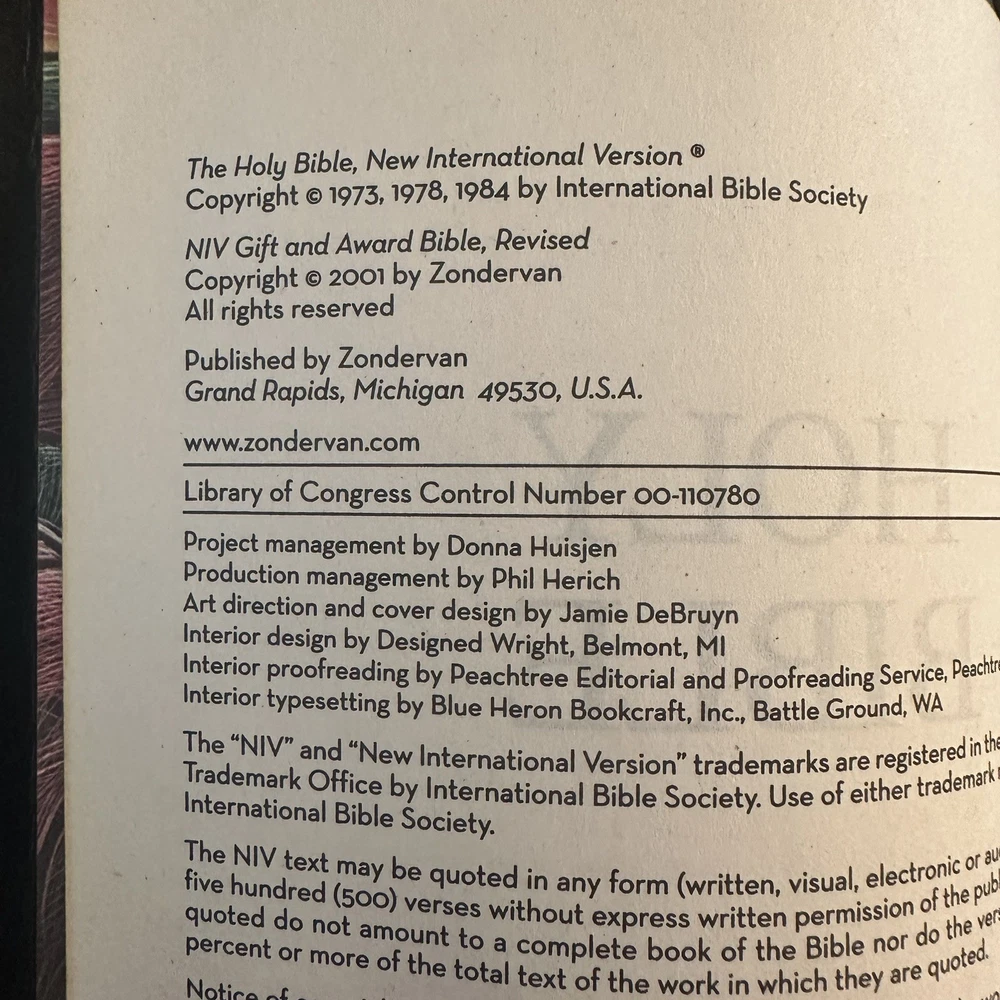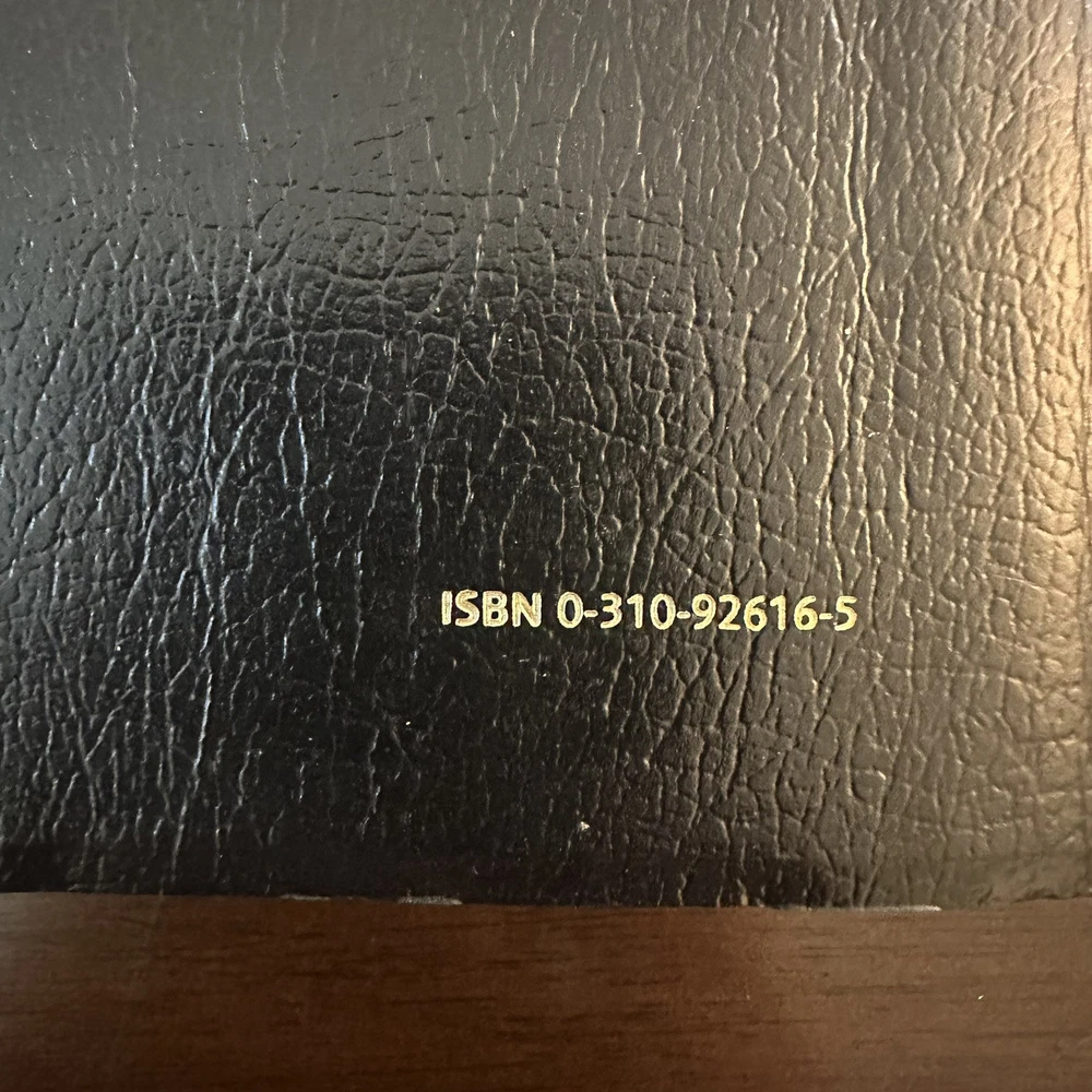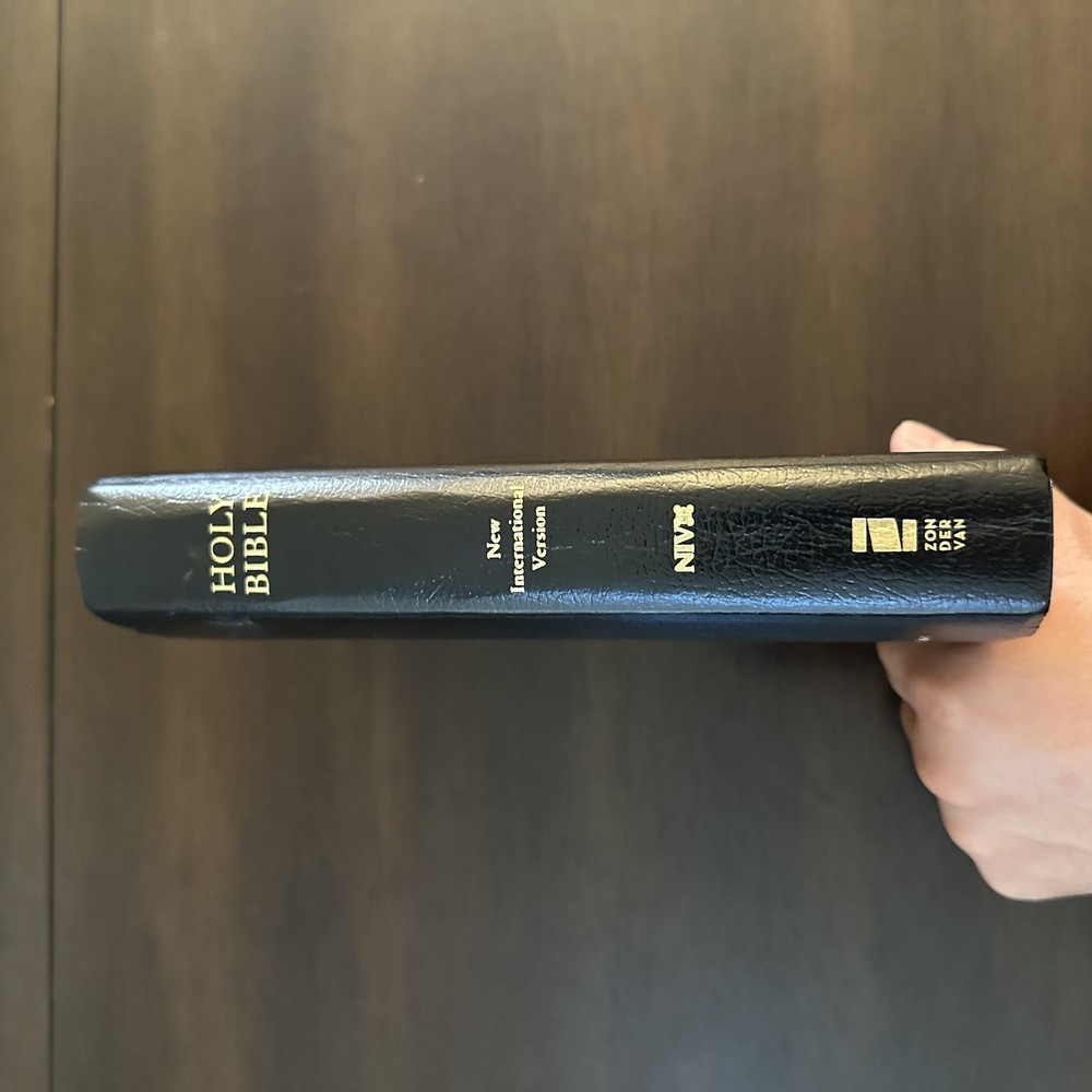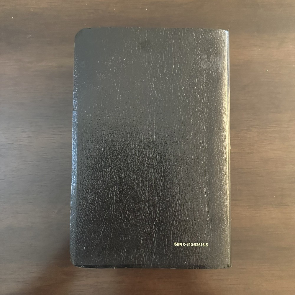 Vintage Holy Bible NIV Zondervan 2001 Revised Leather Bound Red Letter Edition Item is preowned and does have wear from use. See photos. Some of the edges of the covers do have dents. See photos.