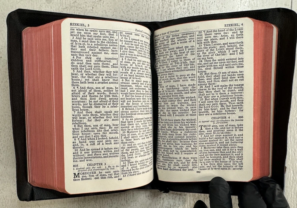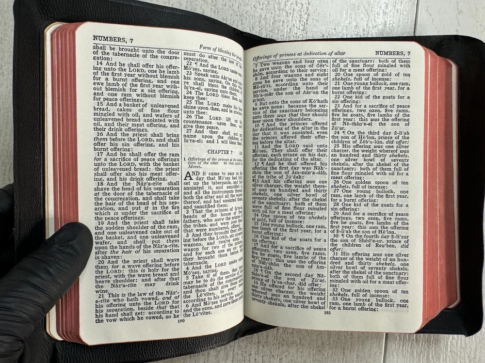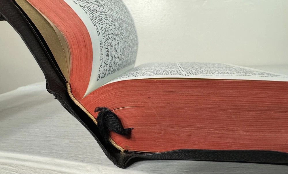 Very good copy! Near pristine. As advertised. Good price. Sent fast. Very reasonable, low shipping cost. Book was wrapped and packed securely: Bible bubble wrapped, protective/sturdy cardboard inserts front and back, waterproof mailer. Good job! Worry free transaction. THANKS SO MUCH!