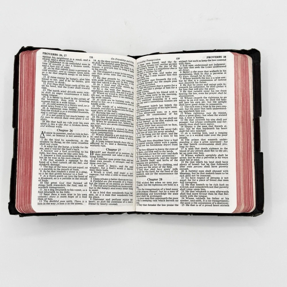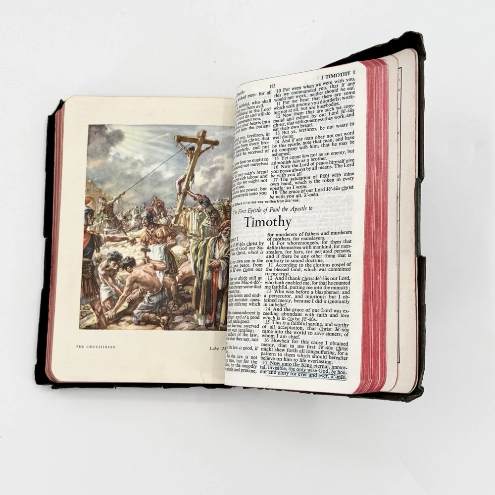 This vintage KJV Bible is a beautiful treasure! The genuine leather cover has aged gracefully, and the binding remains strong. Pages are crisp and easy to read, with no major damage. The red lettering adds a special touch. Perfect for collectors or daily use—just check the photos to confirm condition. A wonderful piece of history!