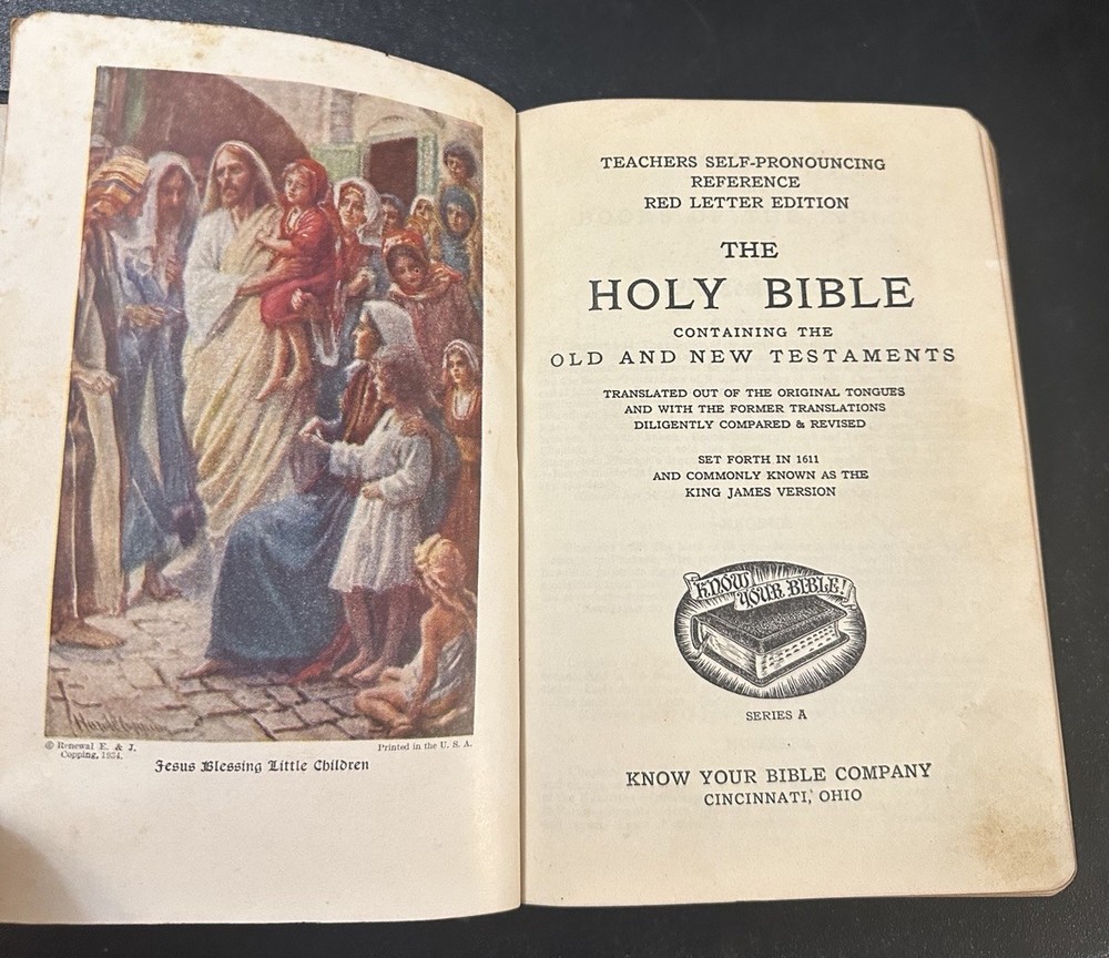 Dive into the richness of spiritual wisdom with the Vintage KJV Teachers Reference Holy Bible. Published in 1934 by Know Your Bible Co., Ohio.This is a treasure for the devout and the curious alike is hard back, promising durability and a timeless aesthetic. Its red-letter edition distinguishes the words of Jesus, enhancing your reading experience. This Bible, crafted for both young adults and adults, is a part of the Historical series and caters to those interested in spirituality, religious studies, and history. It stands as a testament to the devotional literature of its era and is a collector's item for those who appreciate the grand narrative of Christianity and the scholarly traditions of biblical text. COLOR Illustrated...no noted writing or highlights except on the cover page shown in pics. SEE PICS for more details. Shipped USPS Media mail