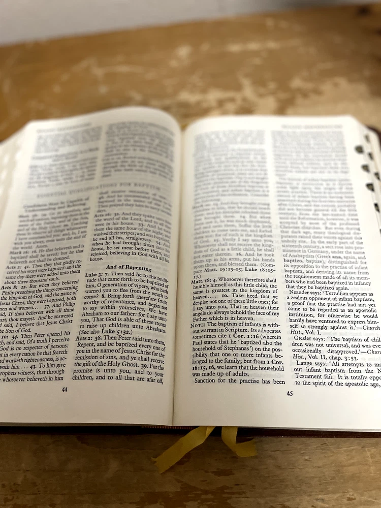 Vintage Leather Bound Holy Bible Concordance, Ready References, Cambridge Jesus Overall fair condition. Front cover is peeling on the inside, and does have a name engraved on front. Inside pages seem ...