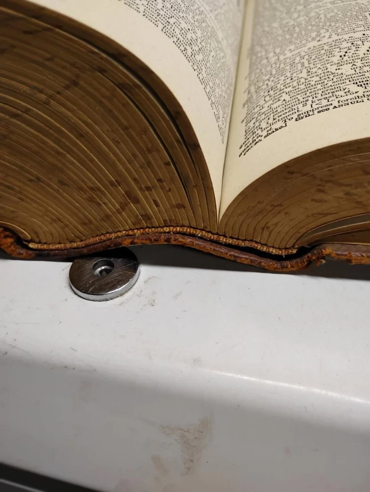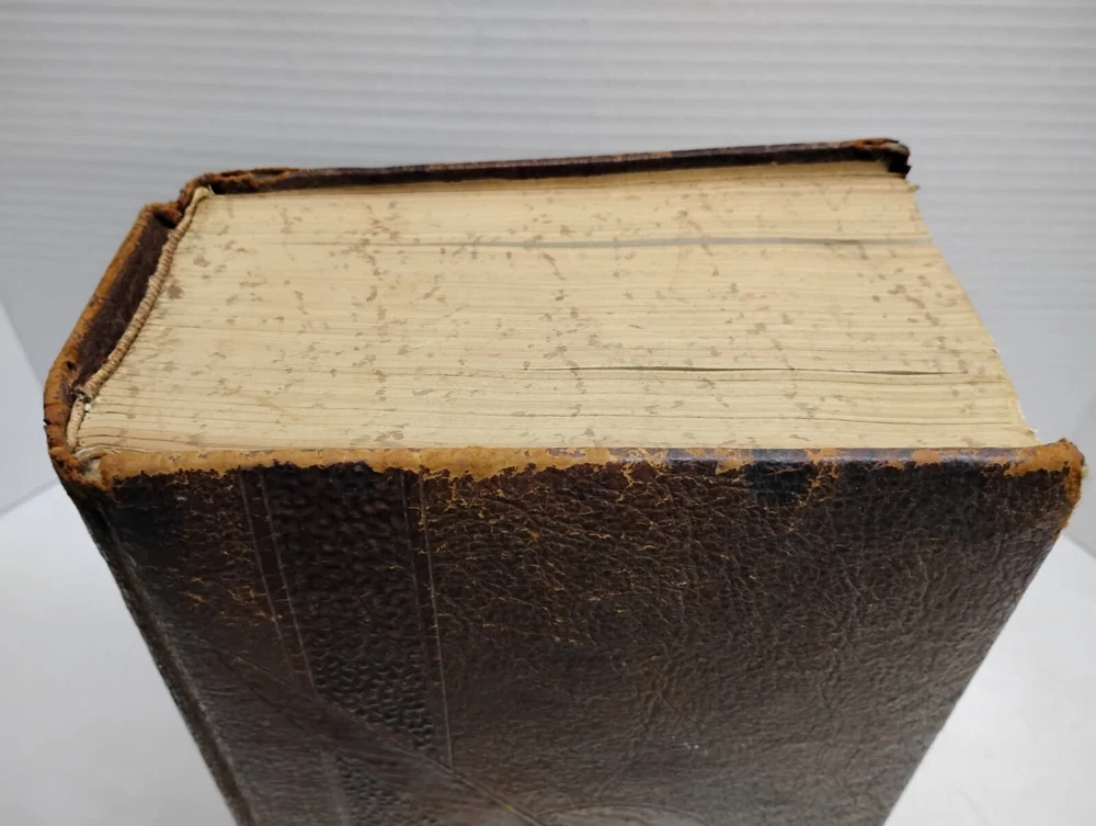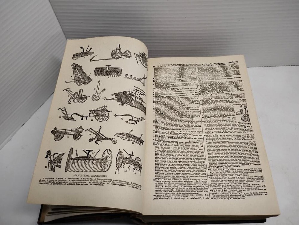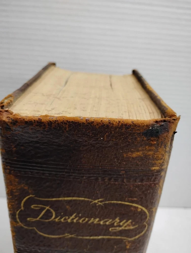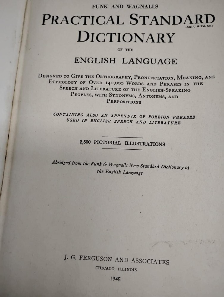 Vintage Leather Bound Illustrated Dictionary Funk & Wagnalls 1945 , shows some age and wear, pages look to be intact, there is some yellowing, there is darkening around the edges of the pages, a few of the corners are rubbed and over all in good condition. Please see all pictures.