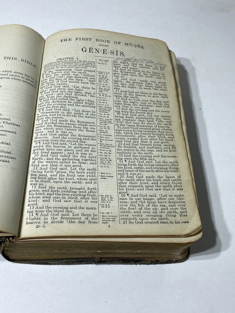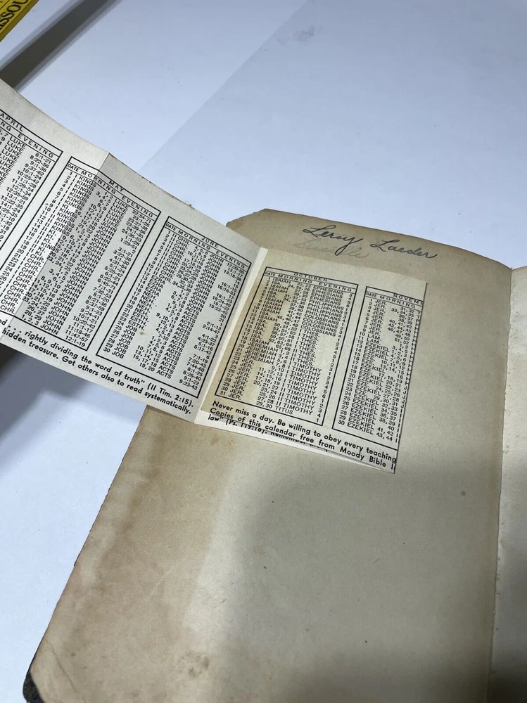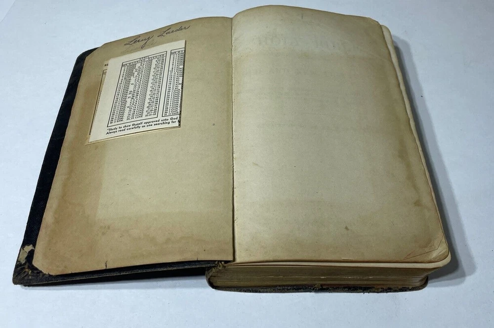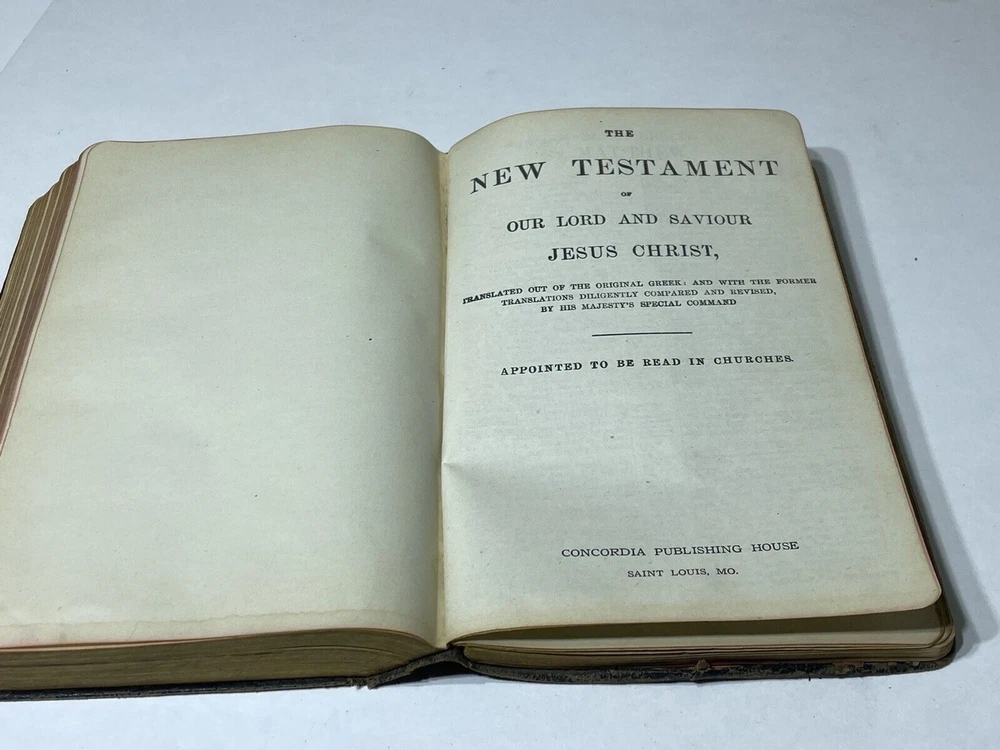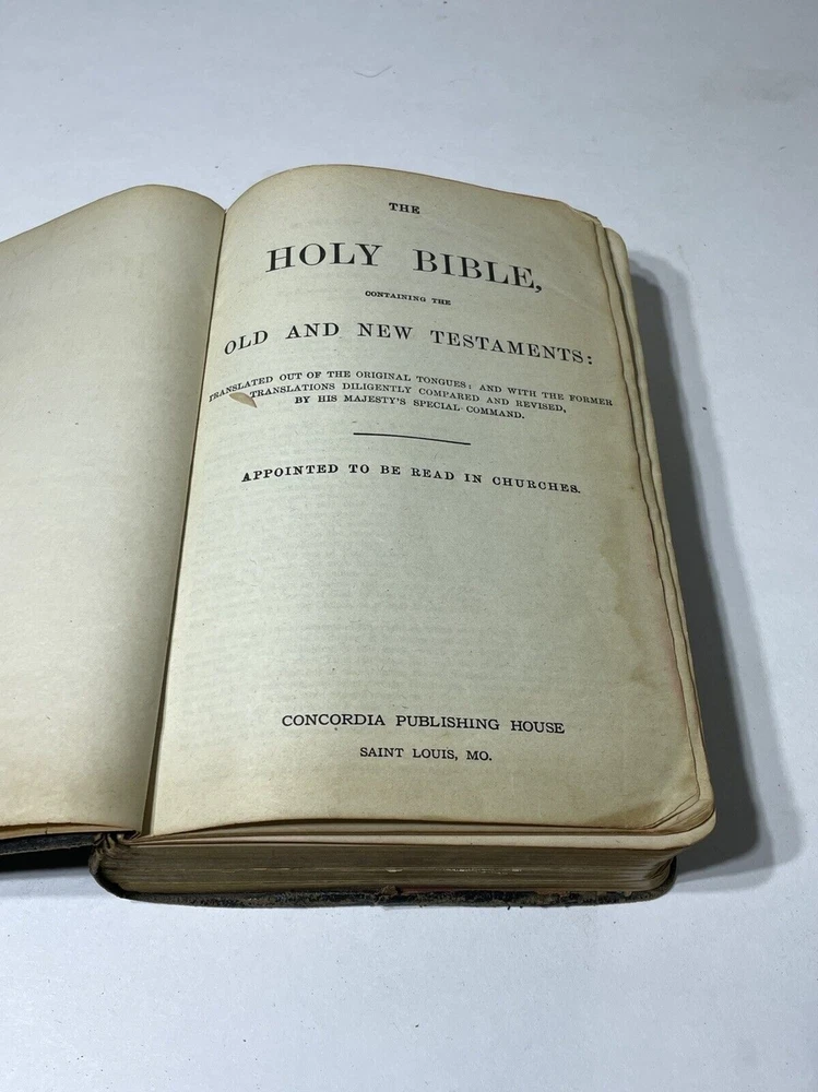 Please review all photos .. (if) any flaws will be photographed. I try to take from all angles to give you the best description of the item. Thanks for looking and please ask any question before purchasing One page is loose from Bible **Color shades/brightness pictured may vary based on the device you are viewing photo images on as well as when item is under different lighting.