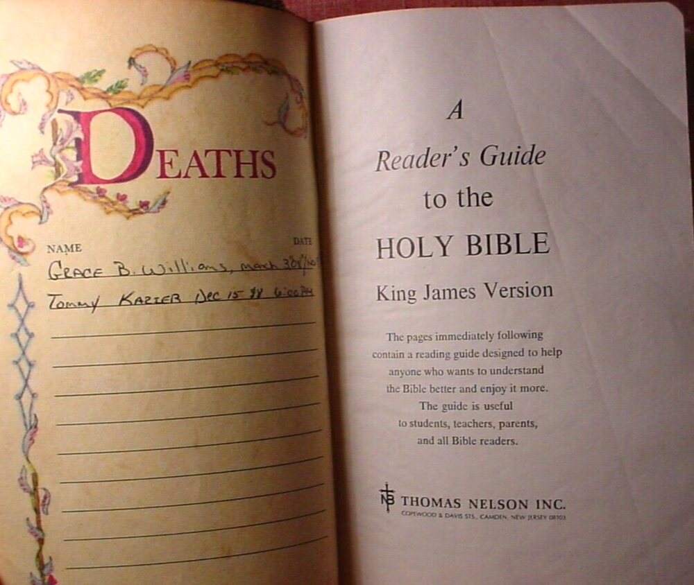 This item is a Vintage Holy Bible pressed by The Thomas Nelson Publishing Co. titled: Holy Bible - A Reader’s Guide To The Holy Bible - Reference Edition - King James Version - Words Of Christ In Red - Thomas Nelson, Inc. 1972 - Printed In The United States Of America - Concordance Included - Genuine Bonded Leather This Vintage Holy Bible measures 7 x 5 Inches and is Bound with Genuine Leather & Gold Trim Page Edges. The smaller size allows it to be carried with ease to any occasion or for outdoor use. Maps & a Concordance Section is included and this King James Version includes both Old & New Testaments. The Center of Each Page includes references to additional passages and other notes to help a reader to expand their knowledge and understanding of how the Bible works in everyday life. An additional section titled, “A Harmony Of The Four Gospels” is also included. This Vintage Leather Bound Holy Bible was used but not abused and it’s remarkable preservation will allow it to be used & enjoyed for years to come. The Pages & Binding is of High Quality & this one was likely somewhat expensive for 1972 Standards. For Ebay Standards, we assign a Condition Grade of Very Good for this Vintage Holy Bible. The Bible is Complete and while no visible tears can be seen on any of the pages, several pages show a crease from time to time and this appears to be simply from being used over an extended period of time and not for any use of dog-ears with most of this being found among the later sections. One area has been highlighted and this is found only on the first page of Genesis and has the appearance that the original owner at first decided to highlight all that was being read before suddenly realizing that maybe this was not a good idea. Highlighting also appears in St. Matthew, Psalms, & Luke Otherwise, only a notation here & there can be seen but this is not extensive and most all is small and easy to ignore. Drop stains can also be seen along the same section where highlights can be seen in Psalms and this appears to be tear drop stains from the original owner on what was likely a very emotional day. The Leather Bound Cover has protected the inside very well and while handling wear can be seen, it does appear to have been handling wear care and is without any real damage. The presentation page has been filled in along with one notation in the deaths section. Yes, this Vintage Bible has been Loved and Used but not abused and can still be used and enjoyed for Years to come for anyone who would like to own this Vintage Holy Bible! Buy it now offers are always welcome! If we feel your offer is reasonable then we might just take it! Try it out today! Shipping: USA - $5.75 - $1 For Each additional Bible Purchased. Shipping Outside USA: Please check with Ebay as they set our shipping rates outside the USA. Please also check out our other Ebay listings…. We currently have several other Lps up for sale at this time. We do Combine the Shipping Rates when more than one item is purchased. If you are set up for automatic payments then we will refund any over payment you make with your auto payment. If you are not set up for auto-payment and purchase more than one item then please wait for us to send you an invoice with the adjusted Shipping Rate. We ship on Monday, Wednesday & Friday and so long as you have made your payment by Noon by the next shipping day then your package should go to Post on that shipping day. If for some reason we have problems on the appointed shipping day then the package will go to Post on the following USPS Working Day. Also, feel free to contact us if you have any questions or concerns to include any need for additional photos. Please keep in mind that extra photos take time to produce and during this time the item you are interested in may be lost to another buyer.