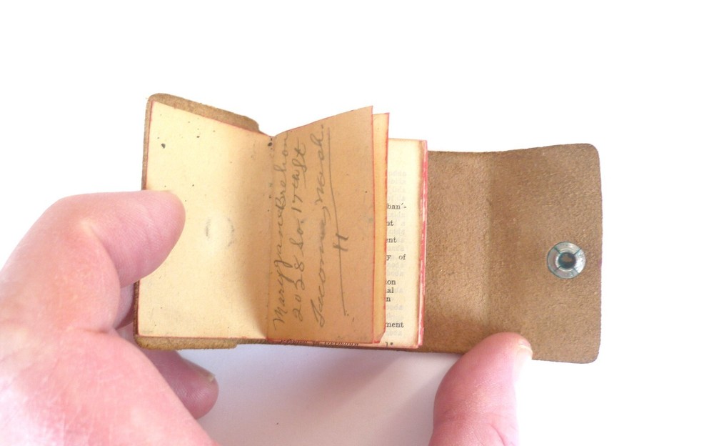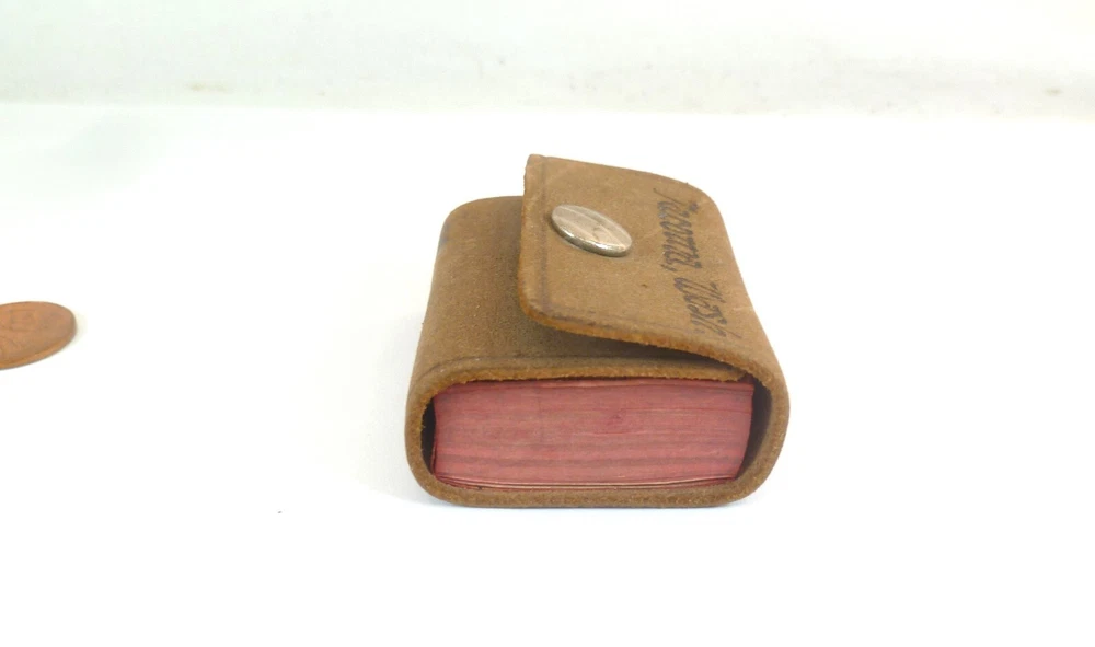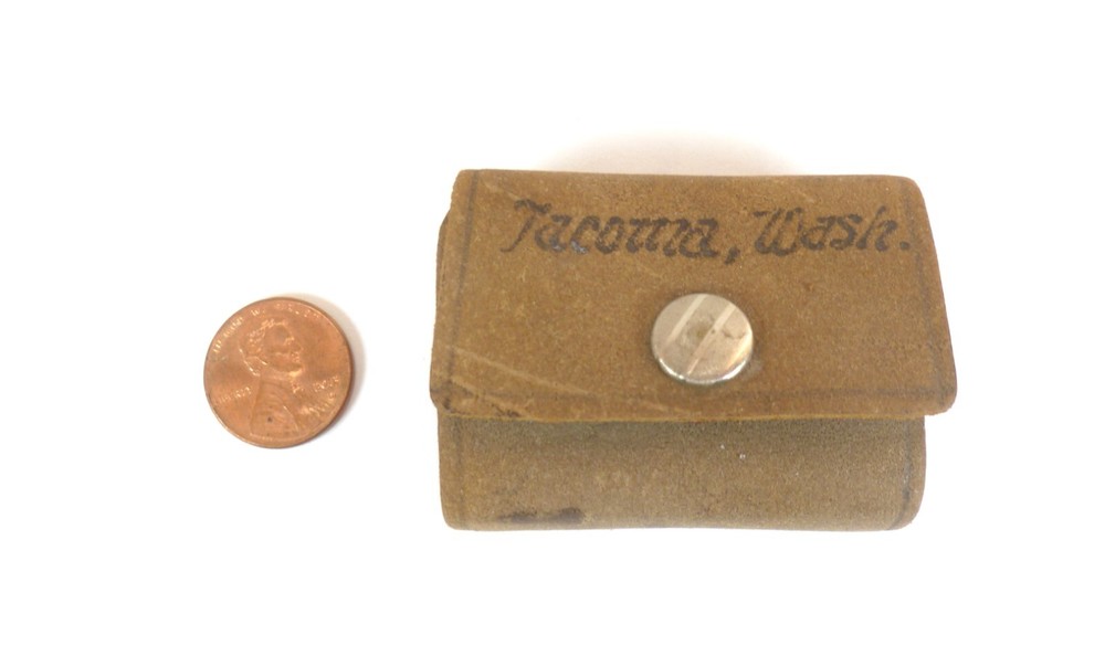 Up for sale is a Little Webster mini Leather Dictionary featuring Tacoma Washington on the cover. It measures just over 2" X 1 1/2". There is writing on the first page and the first 5 pages or so are coming apart from the binding.