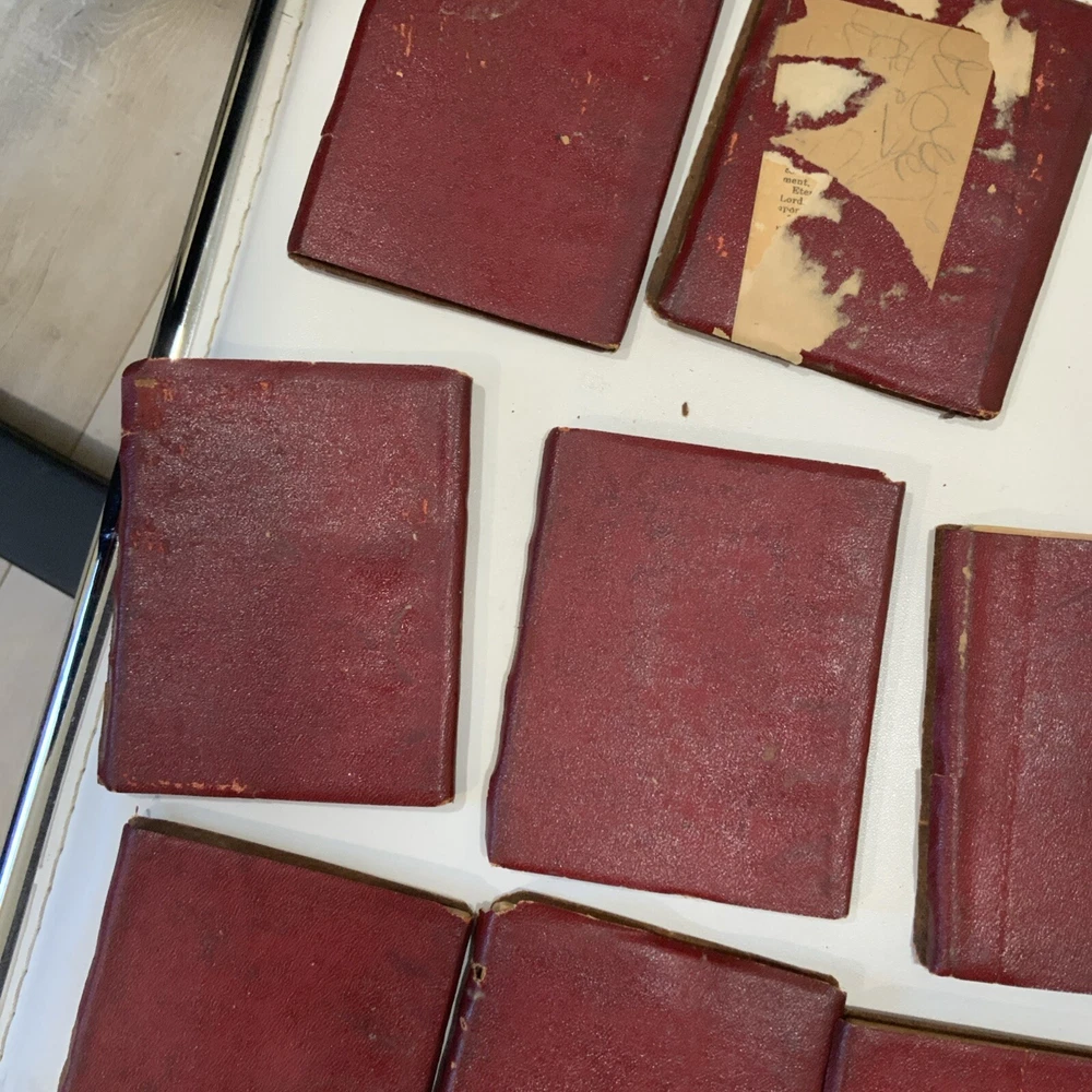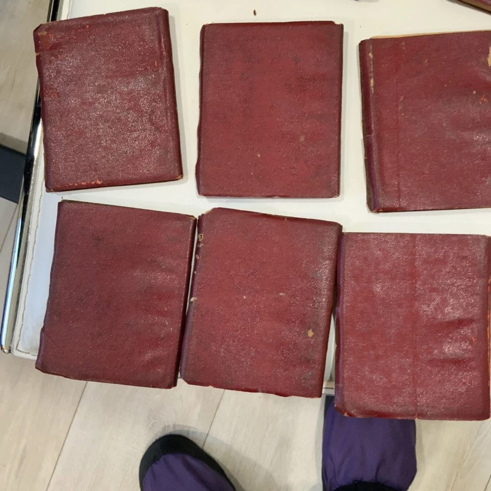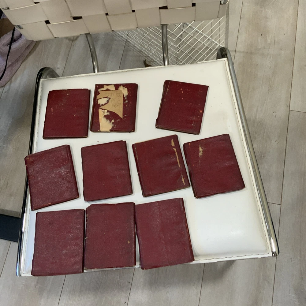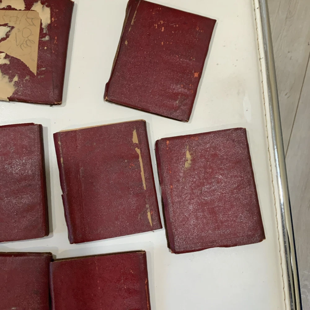 Vintage/Antique Little Leather Library lot of 14 Mini Books. All in various conditions see photos List if books is in same order as photos SHORT STORIES DE MOPASSANT MAN WITHOUT THE COUNTRY HALE FRENDSHIP AND OTHER ESSEYS HENRY THOREAU POEMS ROBERT BROWNING FUFTY BEST POEMS OF ENGLAND A CHILDS GARDEN OF VERSES ROBERT LOUIS STEVENSON The Coming of Arthur Barrack Room Ballads Enoch Arden The Gold Bug Smoke Free Home