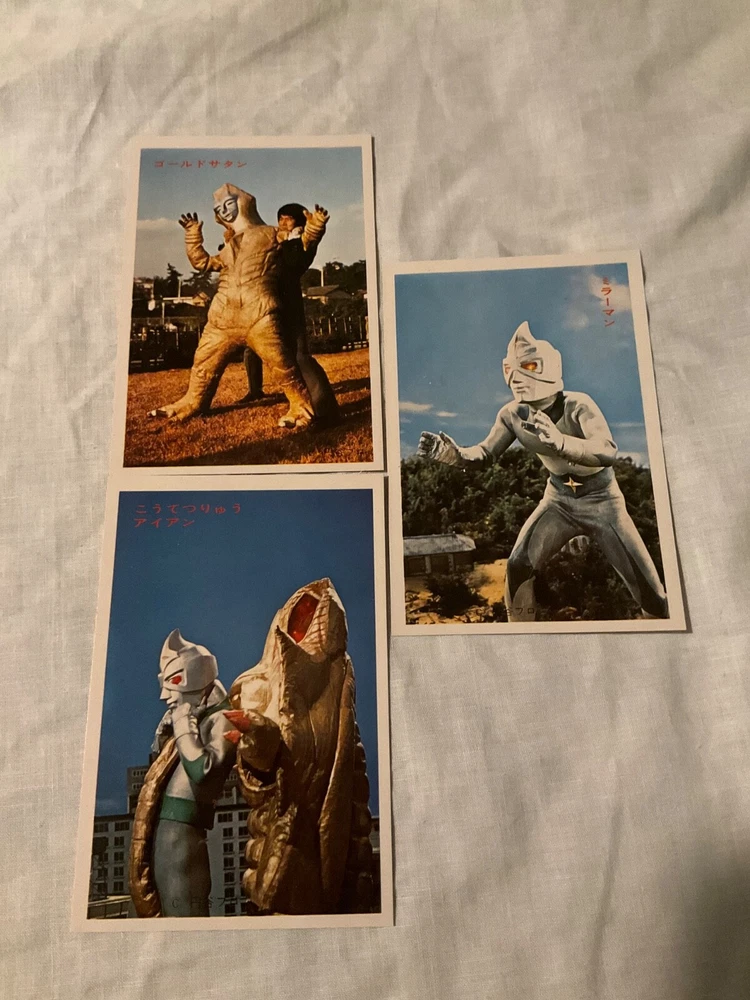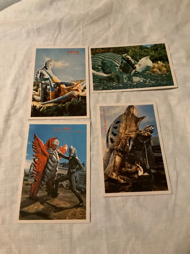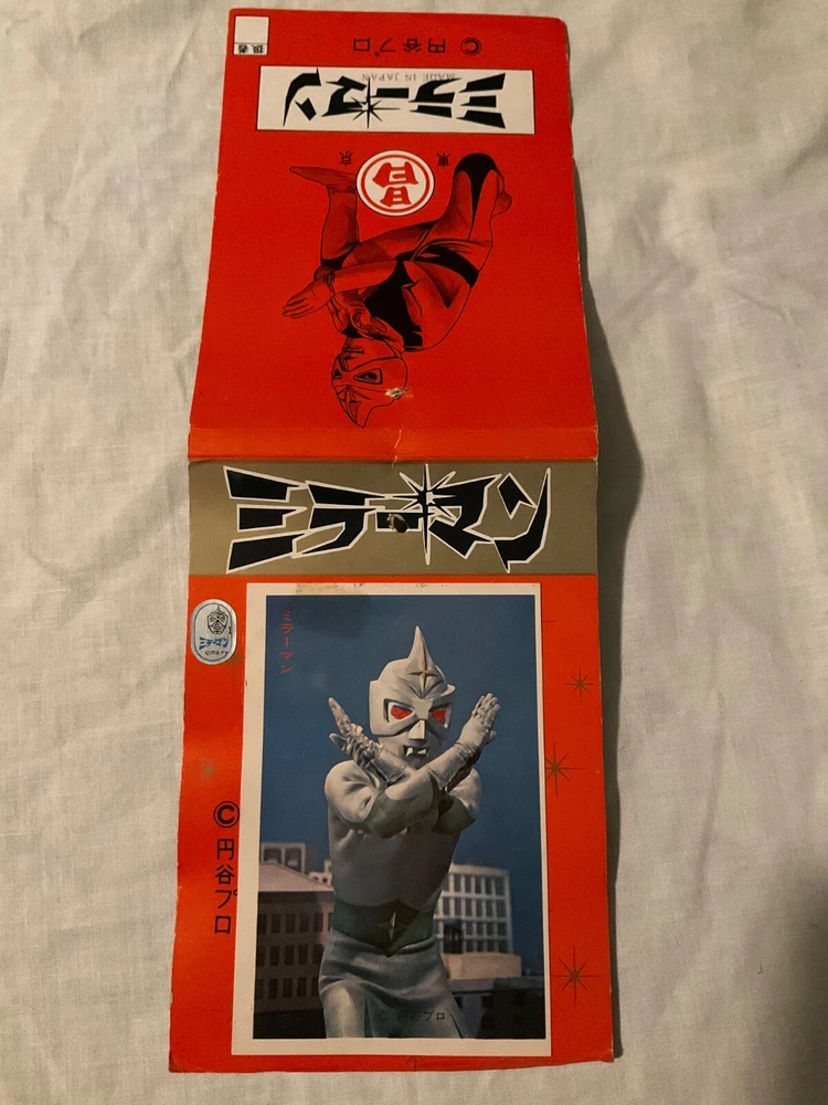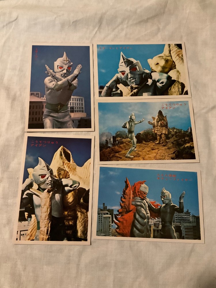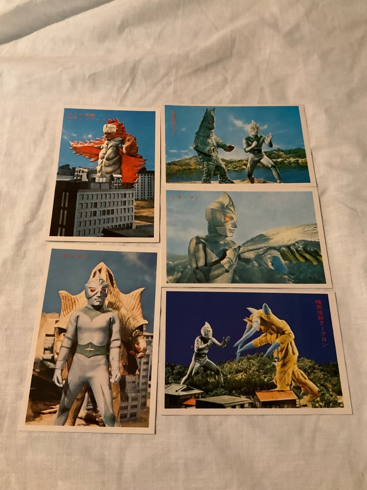 Vintage Mirrorman bromide cards. Made in Japan by Tsuburaya Productions. Year of manufacture not listed but I do believe they are from the 1970s. Cards are minty, nice and sharp, no fading or yellowing, I had them in storage for 20 years. I don’t know how many cards are supposed to be in the pack but there are now 17. Questions? Email me! Please check out my other auctions for more bromide cards and stuff from Japan. Thanks for looking!