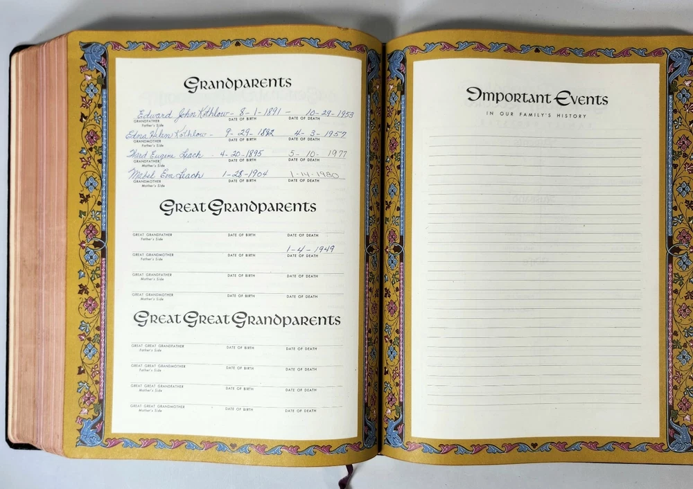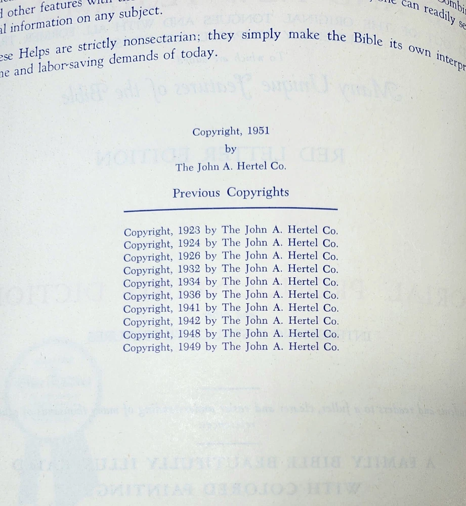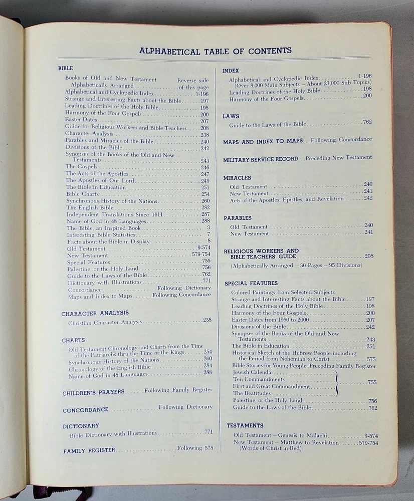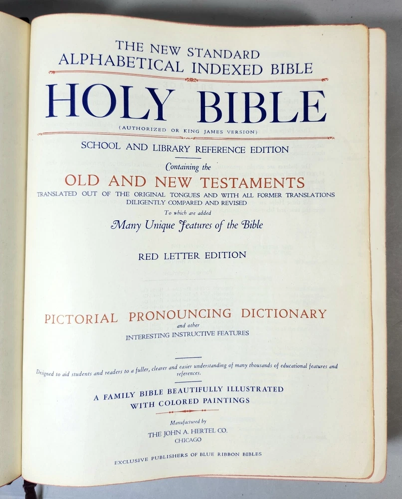 Vintage NEW STANDARD REFERENCE BIBLE Blue Ribbon Book 1951 Red Letter Edition *Some of the Family Information pages are filled out as shown in the photos *See photos closely for condition