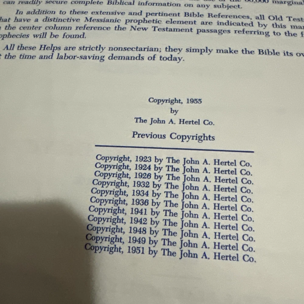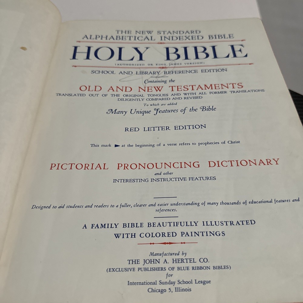 This vintage Holy Bible is a must-have for any collector or enthusiast of reference books. With its faux leather binding and illustrations, this book is a true gem. Written by a group of mixed authors, this book is a comprehensive guide to the Bible, covering topics such as reference and Bible study. Published by Hertel Co. in 1951, this book is a rare find for those interested in vintage books. Whether you're a scholar or just someone who appreciates the beauty of antique literature, this book is sure to impress.