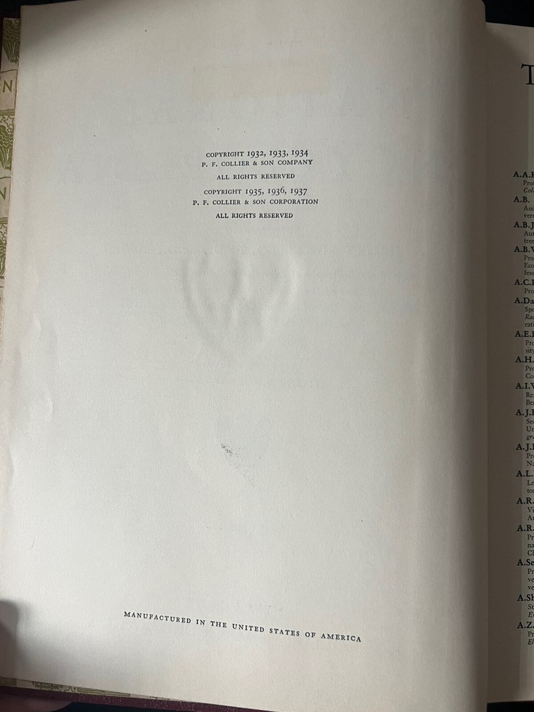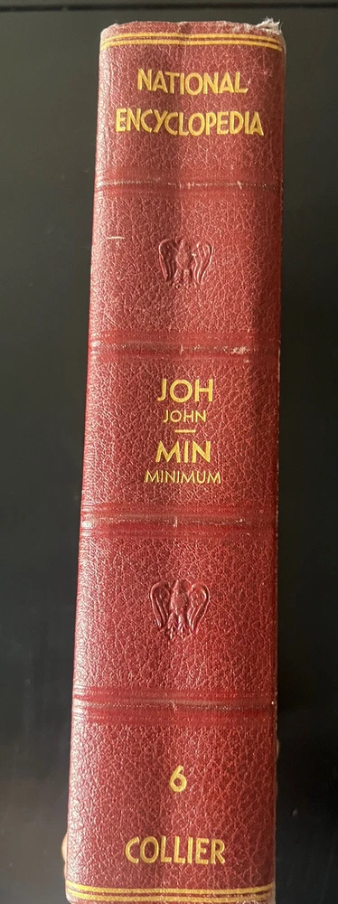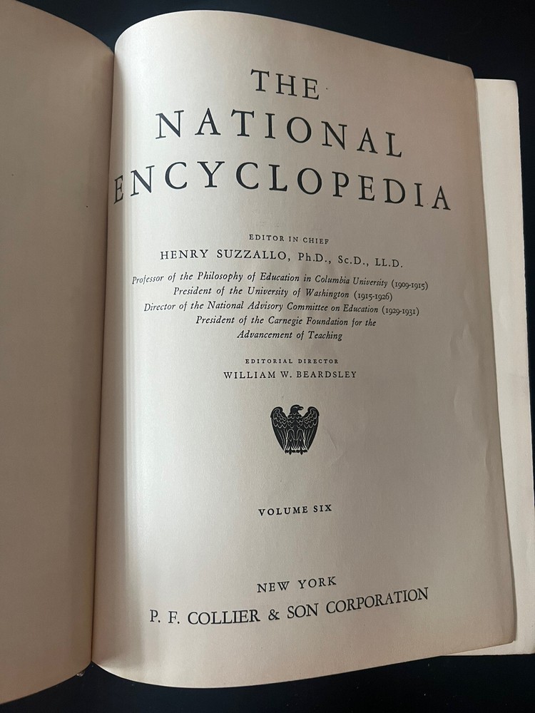 National Encyclopedia, Collier, Volume 6, Copyright 1937, JOH-MIN This is an old encyclopedia/vintage copyright last 1937. It looks like an old book slight damage to cover. Overall great condition for age. No pages torn or missing. Weighs 4.14pounds 608pages