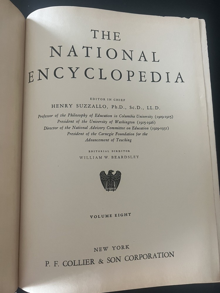 National Encyclopedia, Collier, Volume 8, Copyright 1937, PER-RYS This is an old encyclopedia/vintage copyright last 1937. It looks like an old book slight damage to cover. Overall great condition for age. No pages torn or missing. Weighs 4.18pounds 600pages