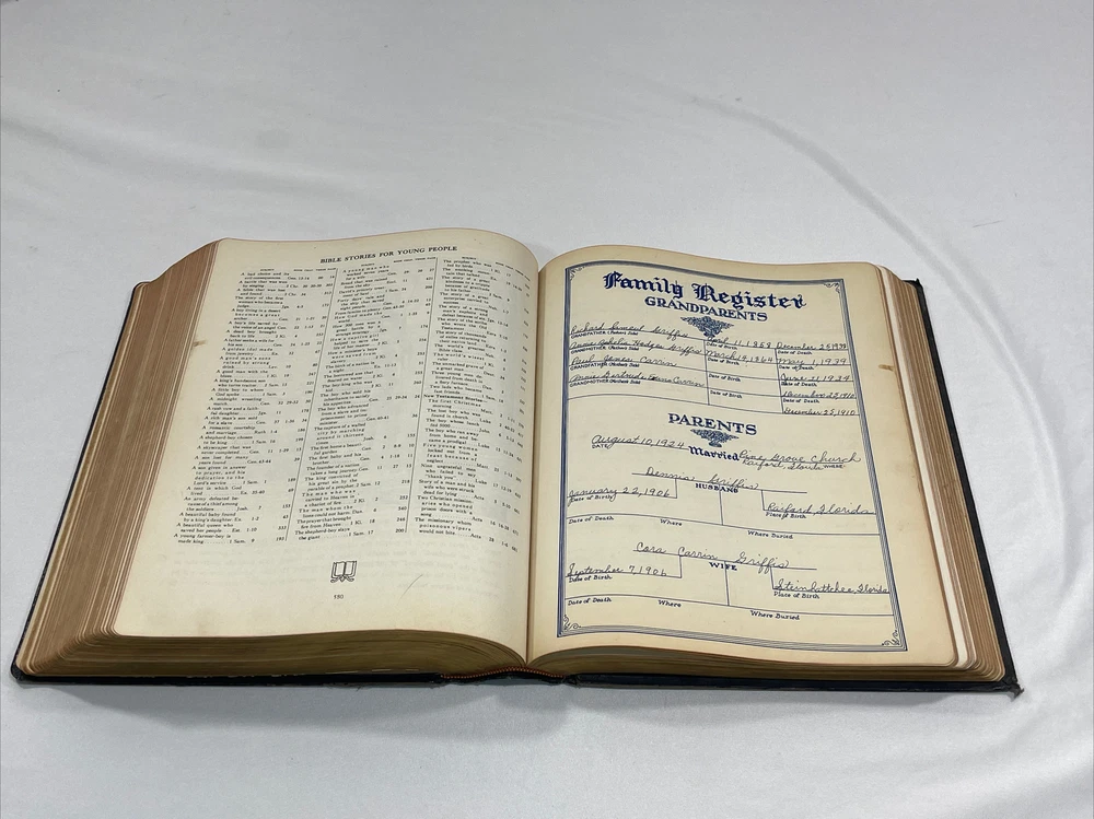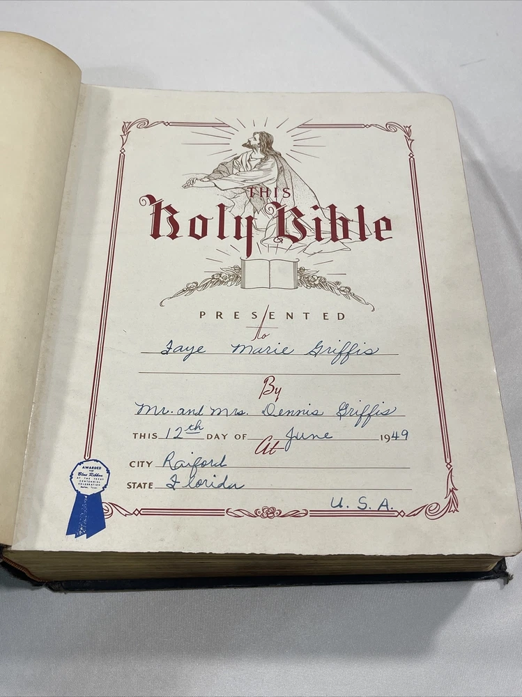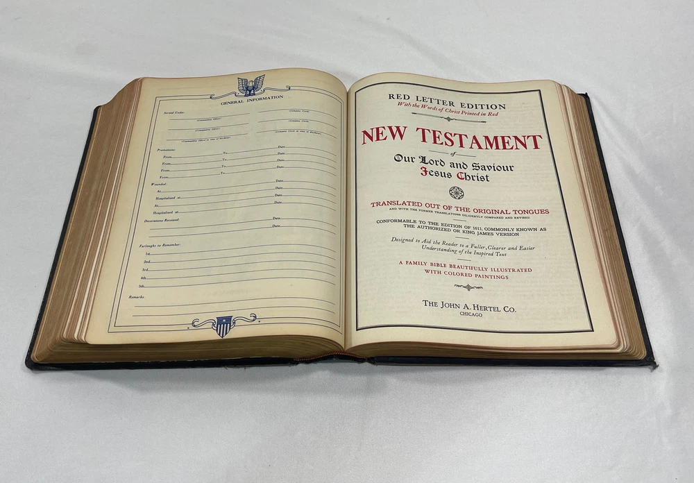 Vintage New Standard Reference Bible Blue Ribbon Indexed Red Letter 1948 Hertel. Condition is pre-owned. Shipped media mail. (Up) Vintage Bible is and overall very good condition with no writing or dog ears inside the Bible other than the family registry. Does show some signs of noticeable wear, as to be expected with a Bible that is over 70 years old. If you have questions or need additional pictures, please ask before bidding.