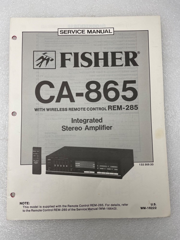 Original OEM service manual, includes, part numbers, schematics, diagrams, charts ect.. . MODEL - Vintage Original Fisher CA-865 Integrated Stereo Amplifier w/ REM-285 Service Manual Repair Condition :This is an ORIGINAL manual, not a photocopy, reprint or digital version. They may show some wear since most of these are vintage. Some have writing and notes written on the inside and outside of the manuals, mostly useful info. Some manuals have creases and edge wear due to storage. I'm currently in the process of listing an entire electronics repair shops, collection of vintage service manuals. Please click on my eBay store as I will be listing these manuals over the next several months or years!!!!! Thanks for your time and feel free to ask questions if needed. Please see all pictures for detailed description. We use the Ebay Global Shipping program for all International sales, Ebay sets the cost of global shipping, International shipping cannot be combineIf free or flat rate shipping is offered it is to the continental U.S only. All others will be calculated by zip code.We will ship to PO BOXES, APO, FPO, DPO, Puerto Rico, US Virgin Islands but buyer must contact us first as the item will need to go USPS and will more then likely occur an extra charge. Purchase limited to size and weight the USPS allows. Free Pick up is an option but payment must be made in cash upon pick up. Once payment is made we cannot cancel the order . We ship only FED EX, UPS or USPS priority Some Items may require a signature at delivery. All used items are sold AS-IS As described. We do our very best to describe the item listed. 3-106