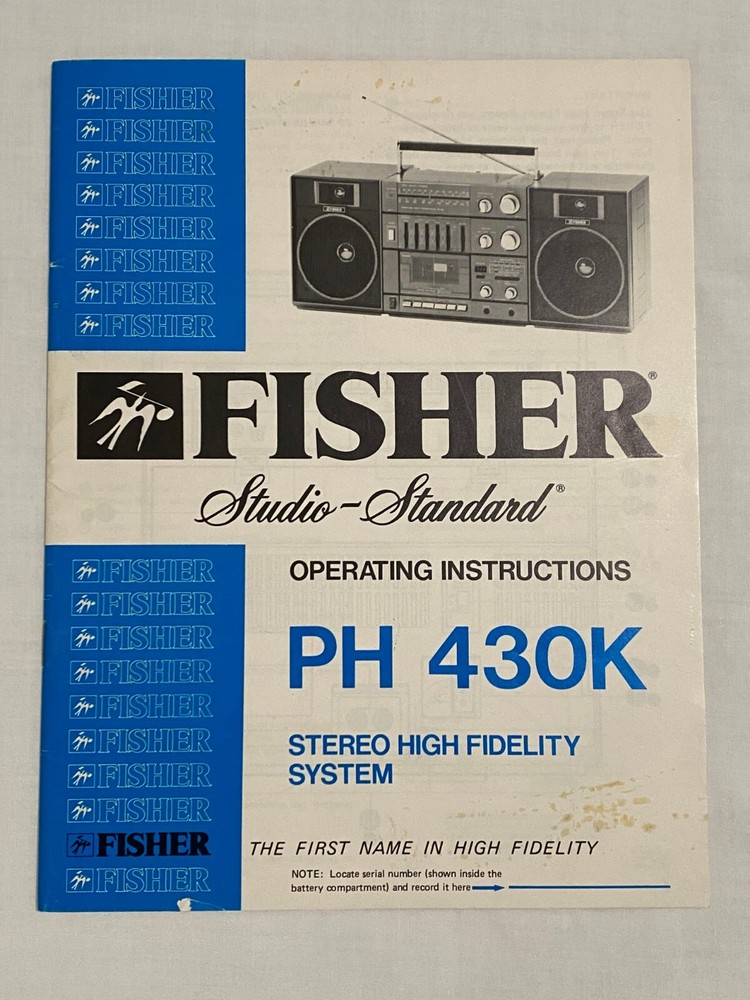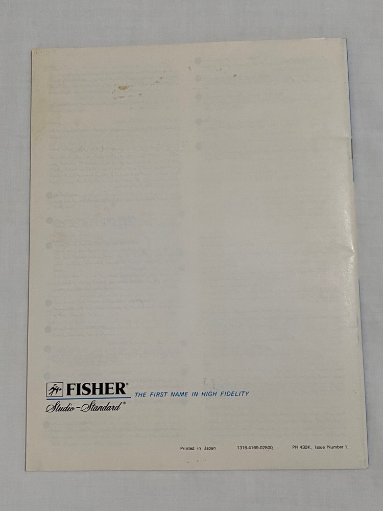 Vintage Original Fisher PH 430K Stereo Hi Fi Operating Instructions Manual Printed in Japan Issue Number 1! 1316-4169-02800 8-1/2" x 11" 48 pages multiple languages Used, as-is. Some cover nicks and dirt. All pages are readable. See attached pictures.