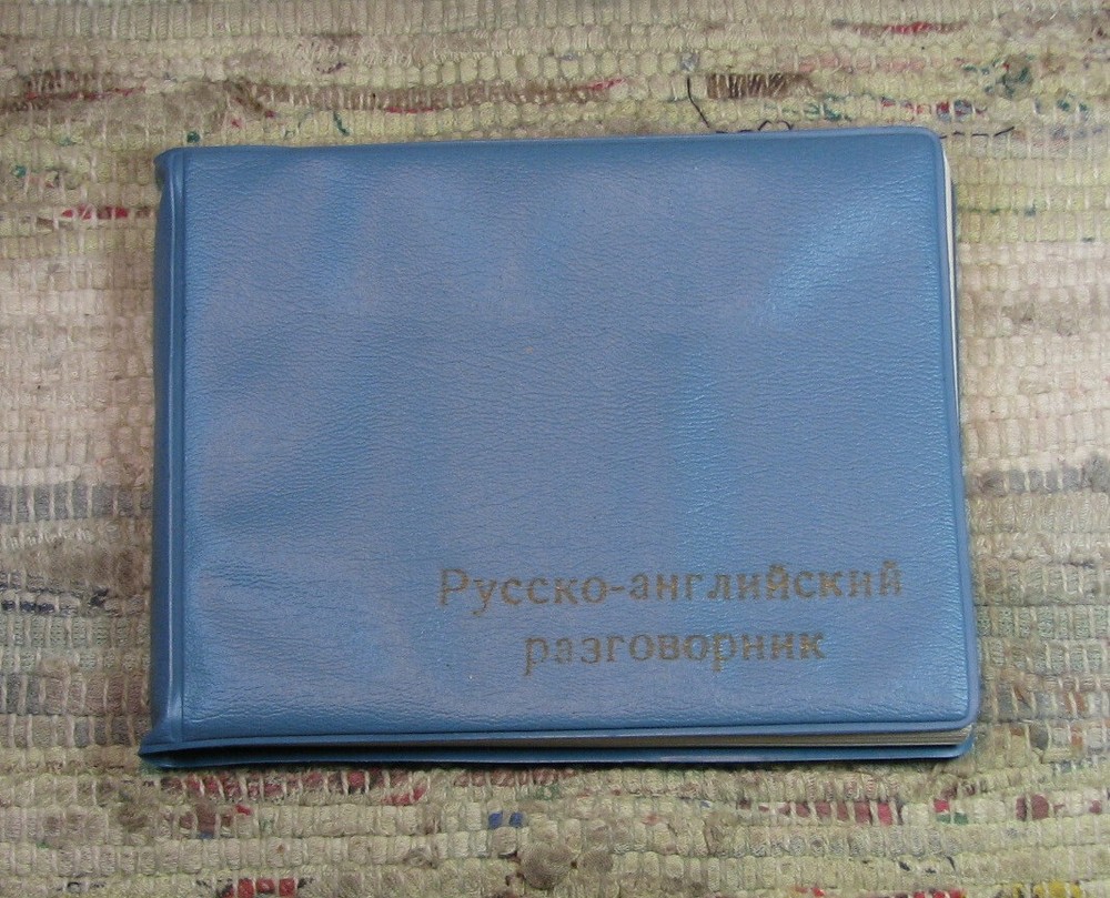 Vintage Русско-английский разговорник Russian-English Phrasebook Pocket faux leather bound softcover is in very good condition, no underlining, good binding, please see photos АО "Светоч", no year, 104 pages of the text and 55 blank lined pages - an alphabetical notebook for writing down new words is placed at the end 4 x 5 x 3/8 inches Записная книжка-алфавит для записи новых слов помещена в конце