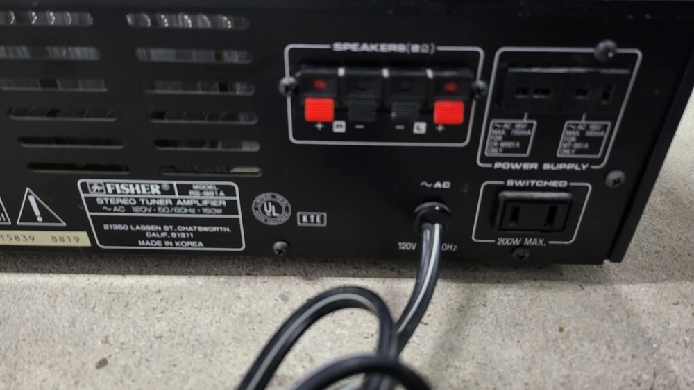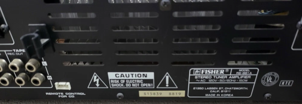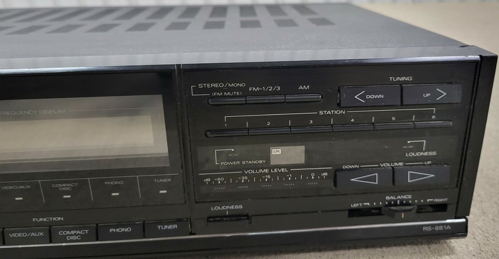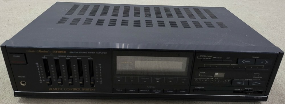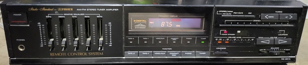 Vintage Studio Standard By Fisher RS-881A Stereo Tuner Amplifier Made In Korea. It has the usual scuffs and scrapes from use, but is tested and works perfectly. Does not include a remote control or any other accessories. We ship the same business day in most cases.