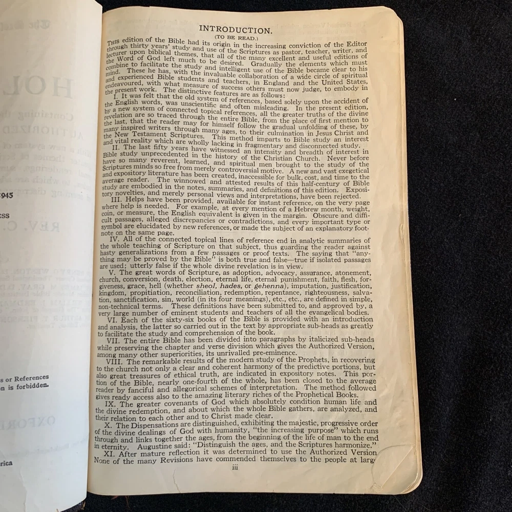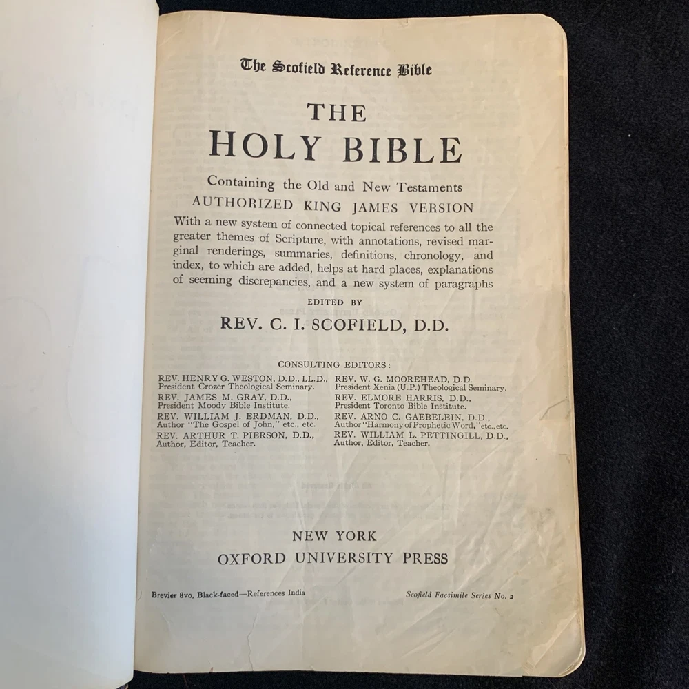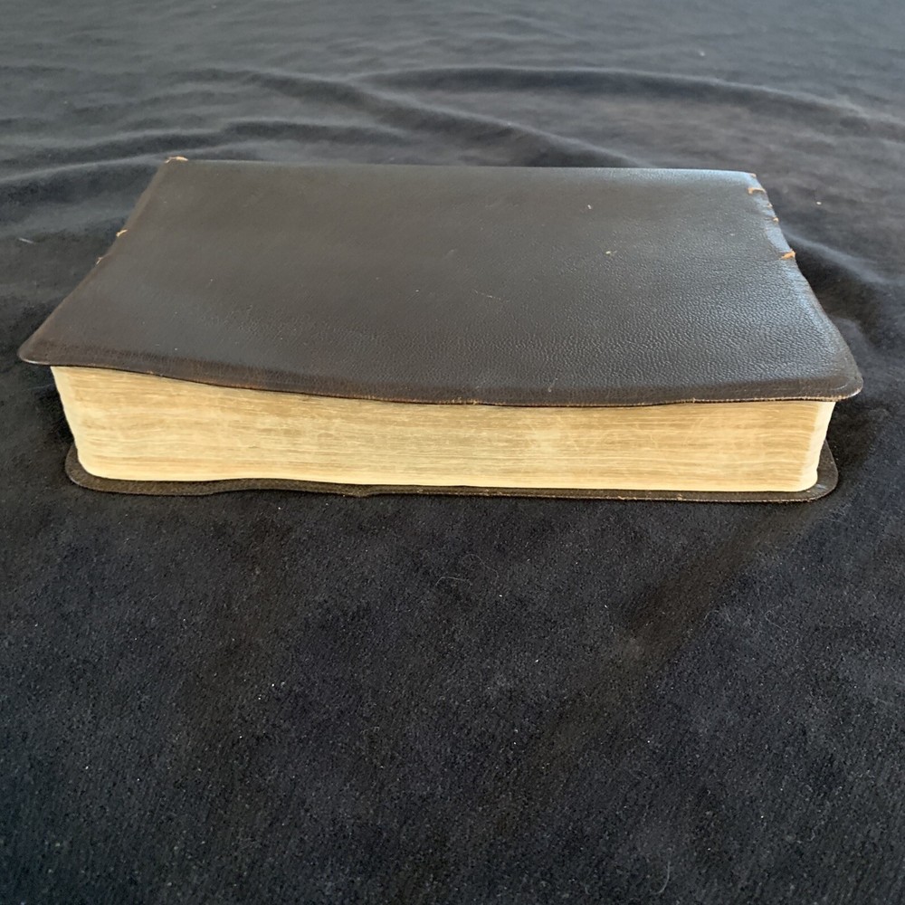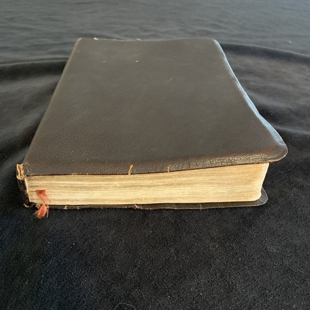 Excellent find! Book Condition : The book is in good condition for its age. The front/back covers are in good condition, they have some cracks on the edges. The binding is in good condition. There is an area in the back of the bible where the pages are separating from the binding. Most of the blank pages on the front and the back have writing on them. Some pages throughout the bible have markings. There are many pages that have tears and creases throughout the bible. A blank page in the back is completely ripped out. Size: 9 x 6 x 1.5 inches Please see all pictures for further condition details. Carefully packaged and boxed for safe delivery Quick one-day handling turn-a-round
