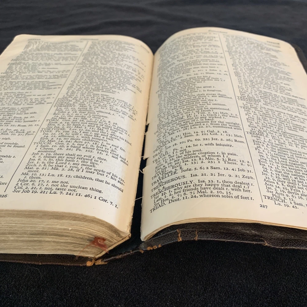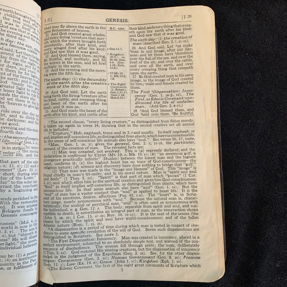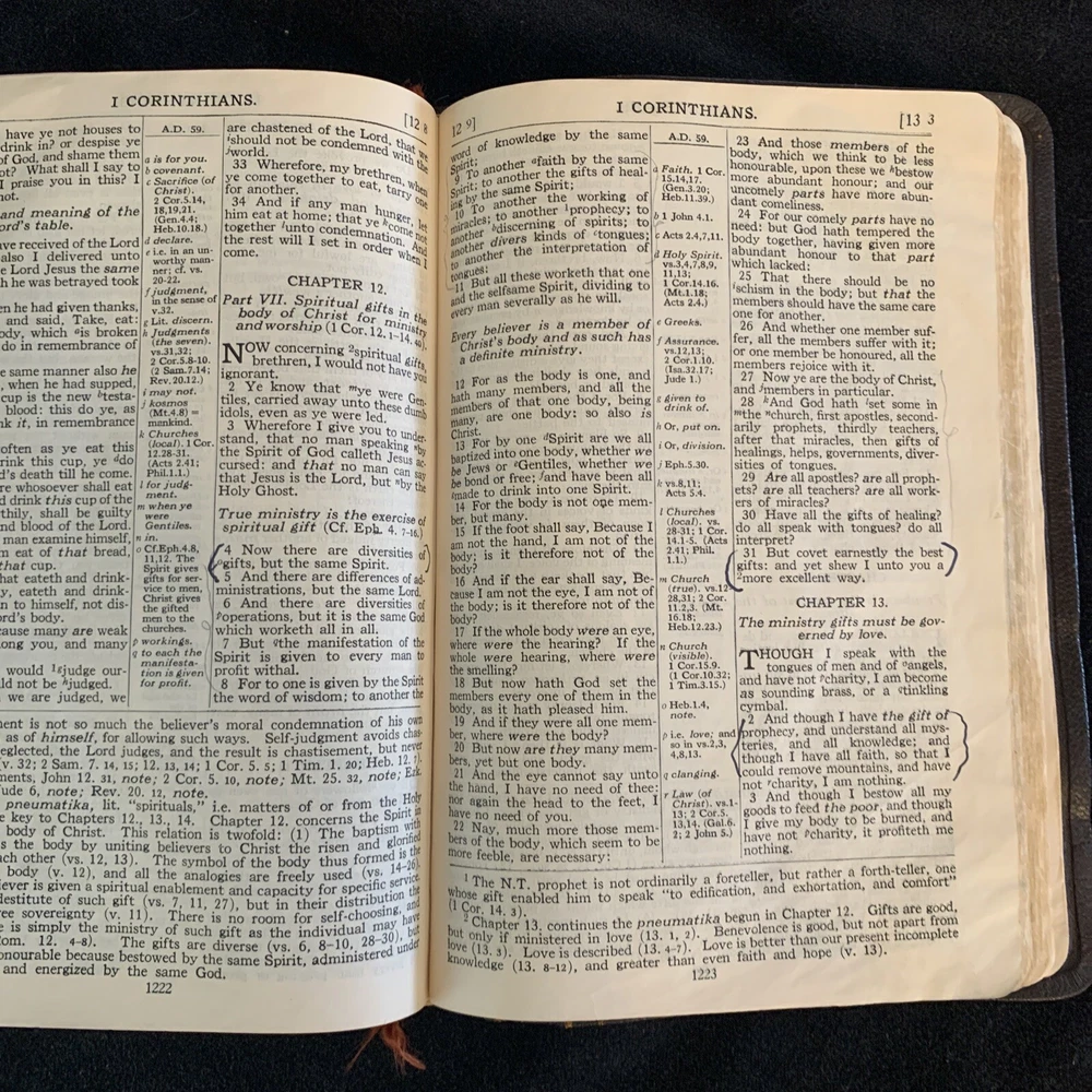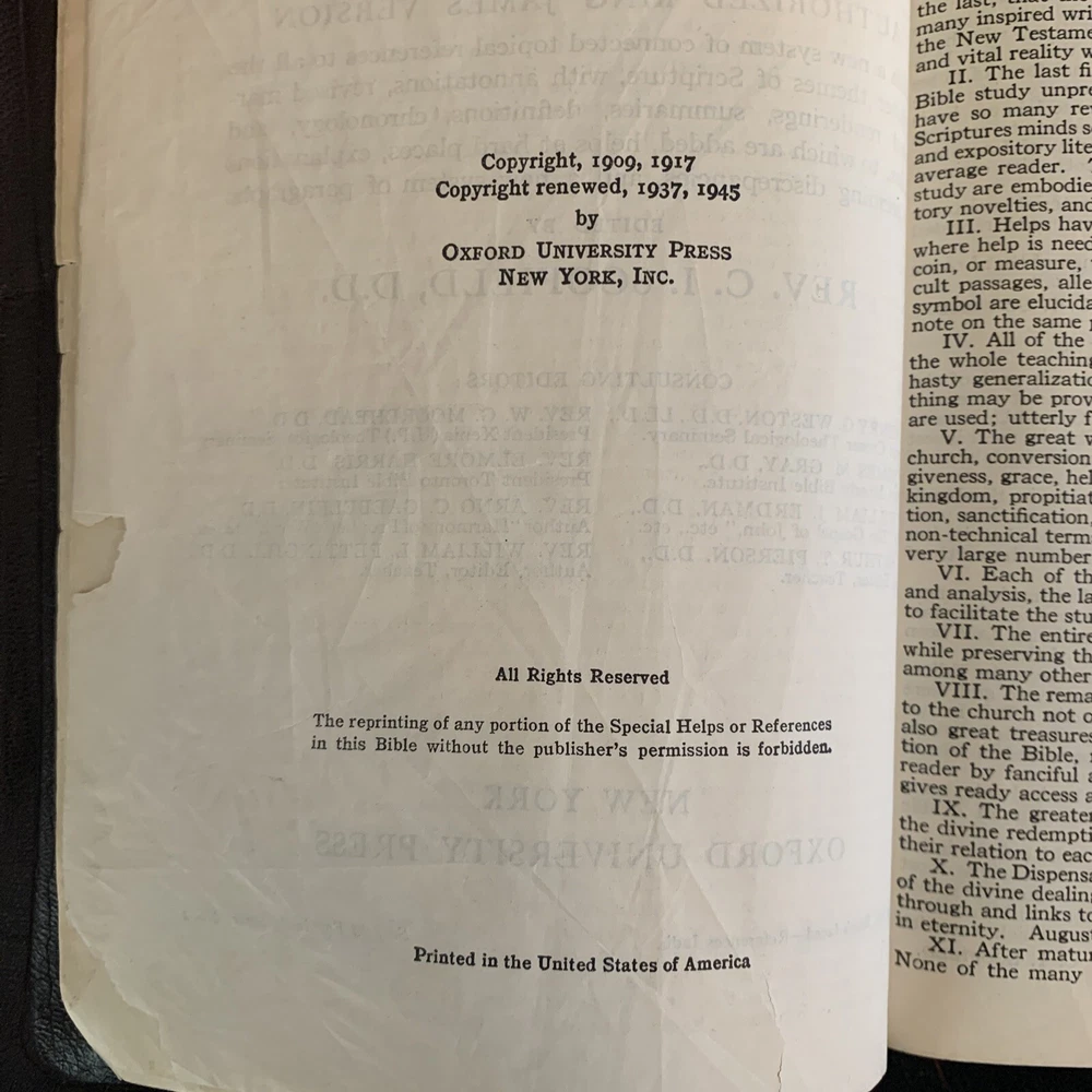 Excellent find! Book Condition : The book is in good condition for its age. The front/back covers are in good condition, they have some cracks on the edges. The binding is in good condition. There is an area in the back of the bible where the pages are separating from the binding. Most of the blank pages on the front and the back have writing on them. Some pages throughout the bible have markings. There are many pages that have tears and creases throughout the bible. A blank page in the back is completely ripped out. Size: 9 x 6 x 1.5 inches Please see all pictures for further condition details. Carefully packaged and boxed for safe delivery Quick one-day handling turn-a-round