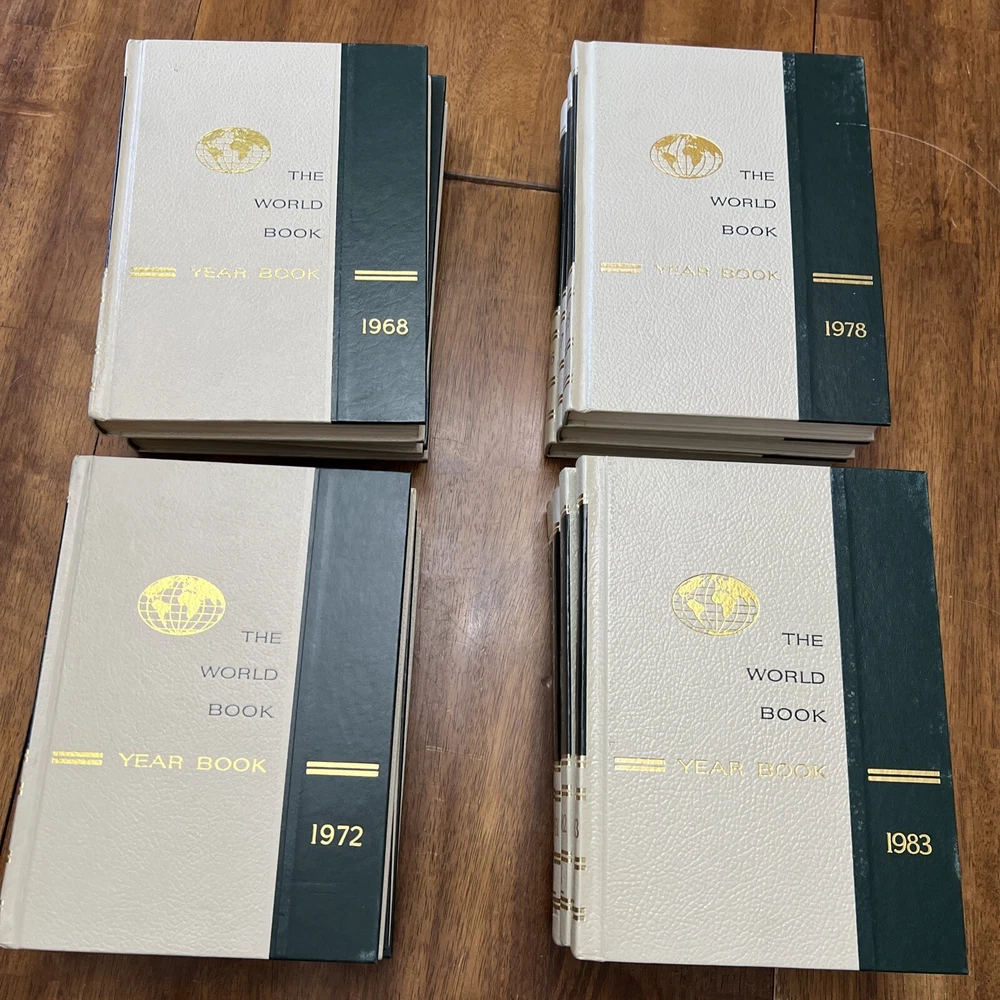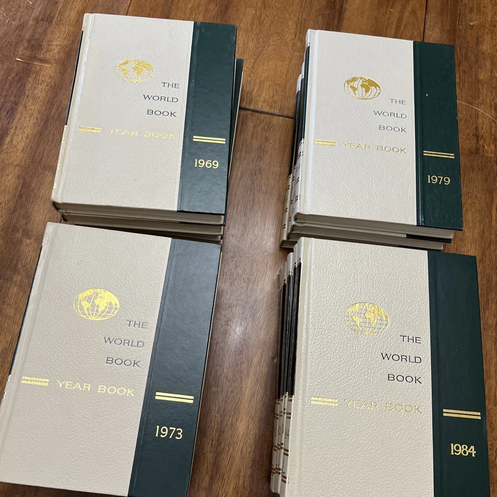 Explore the past with this vintage set of The World Book Encyclopedia Yearbooks. Faux leather bound and illustrated, these books are a valuable addition to any collection. Written in English, this educational and historical series offers a wealth of information on reference and world history topics, catering to a wide audience including young adults and adults. The 17 yearbooks in this set were published between 1968 and 1984 by Vintage Books in the United States. With an unknown edition and in good vintage condition, these hardcover books are a must-have for history enthusiasts. Add this timeless collection to your bookshelf today. Please see pictures for condition. 1969 year book has a slight crack in the binding. Other are all in very good condition. If you have any questions please ask. Thanks for looking and check out my eBay store.