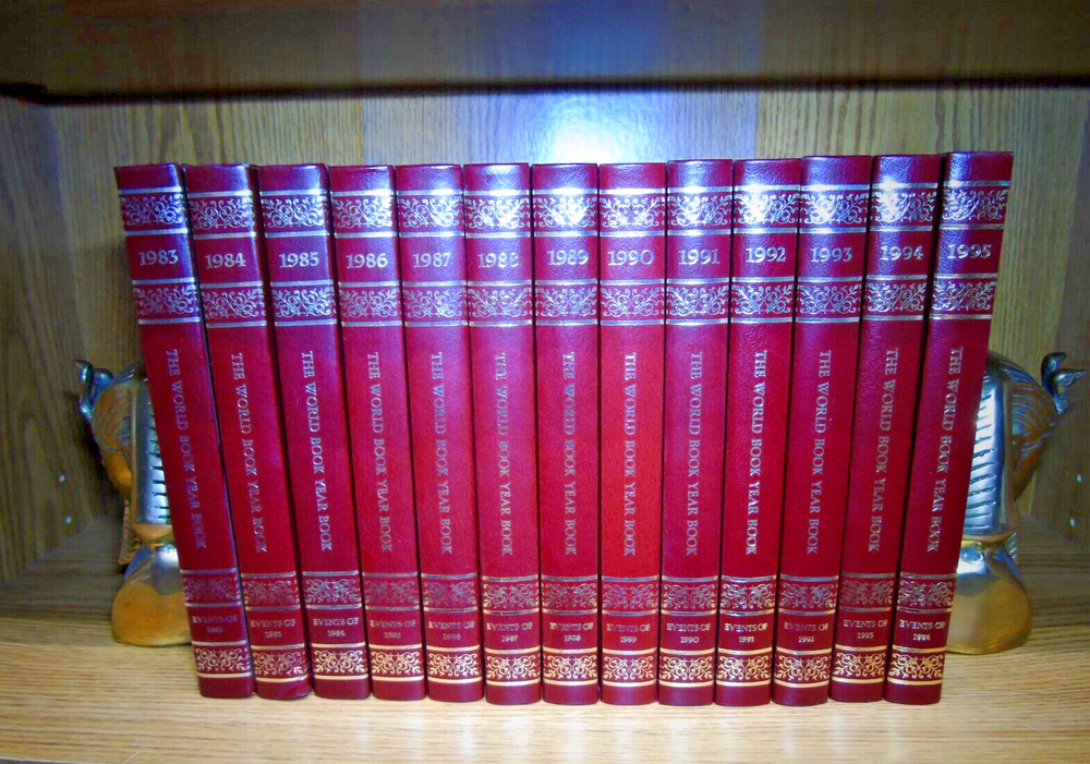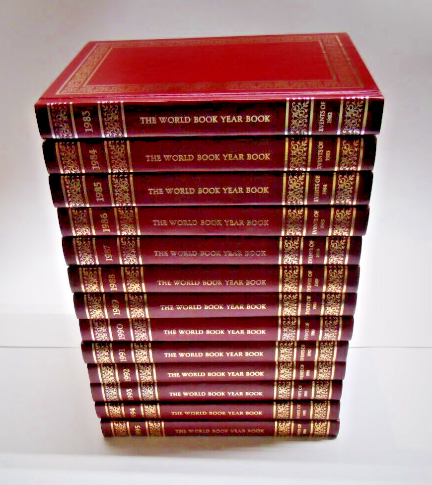 This vintage lot includes 13 hardcover books of The World Book Year Book, covering various topics from history to entertainment. The books are in great shape and perfect for young adults, ages 9-12, and adults alike. Each book is in English and was published by World Book in the 1980s. The author is unknown, but the narrative type is nonfiction and the genre is history. The books are not personalized or inscribed and do not have an ex libris or signature. This unit is perfect for collectors or anyone interested in vintage books. AN1435BK1258LT372LRBS3SH1(24)