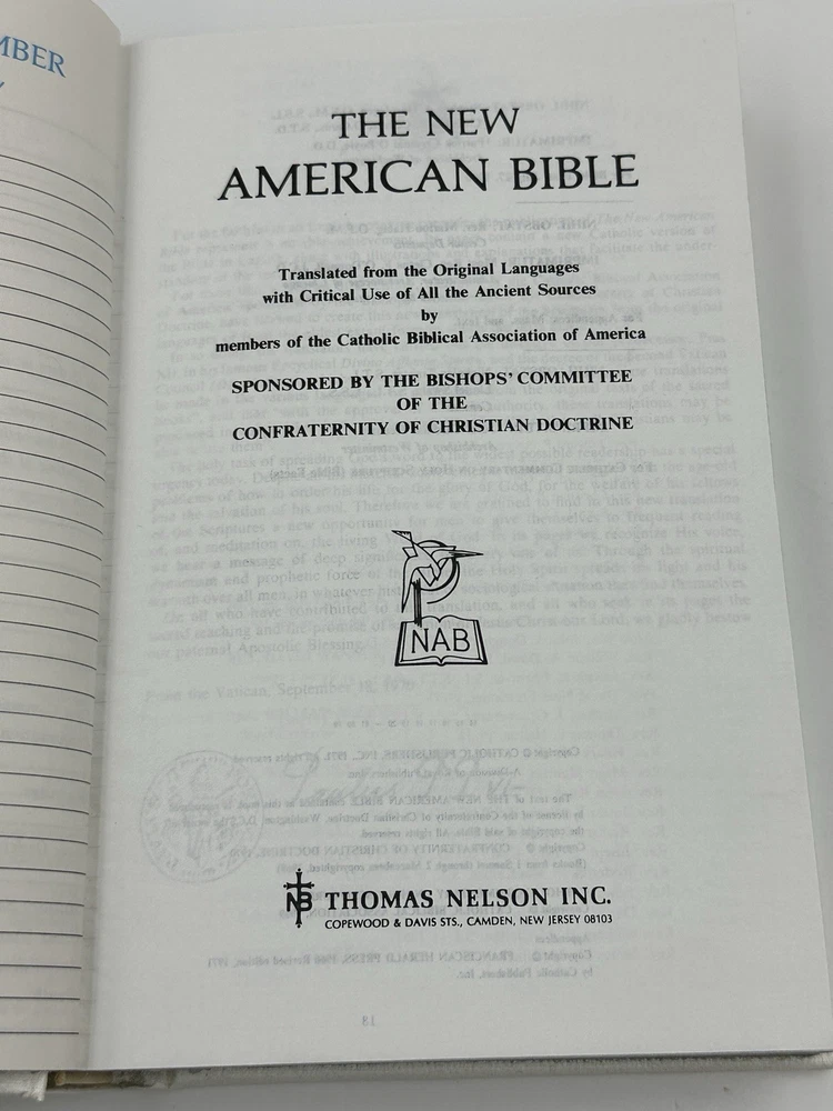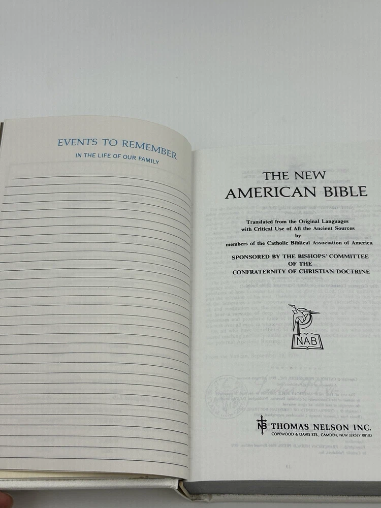 Vintage Thomas Nelson 1971 New American Bible Catholic Edition White Leather ~ Please Review All Pictures ~ New In Box