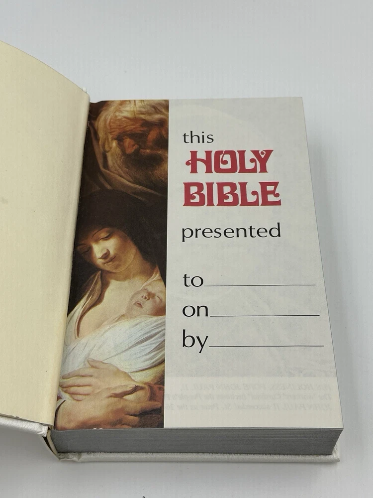 This beautiful vintage Bible is a true gem! The white leather cover is elegant and timeless, and the pages are crisp and clean. As a collector’s piece, it feels special—like holding a piece of history. The New American Catholic translation is clear and easy to read, making it perfect for both study and reflection. The fact that it’s still new in its original box is incredible! If you love vintage religious books, this one is a must-have. Highly recommended!