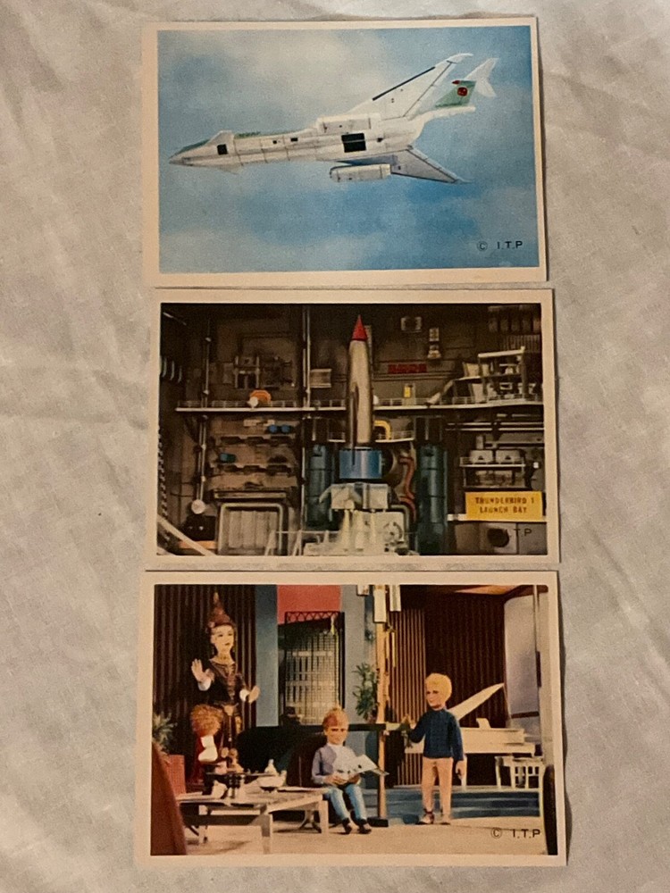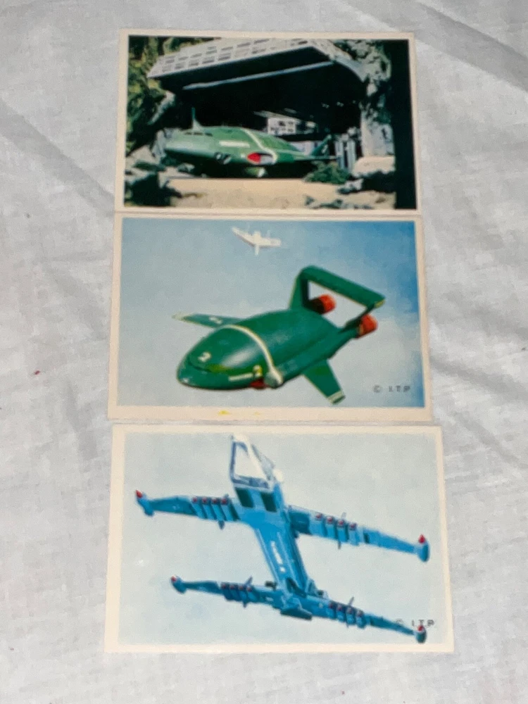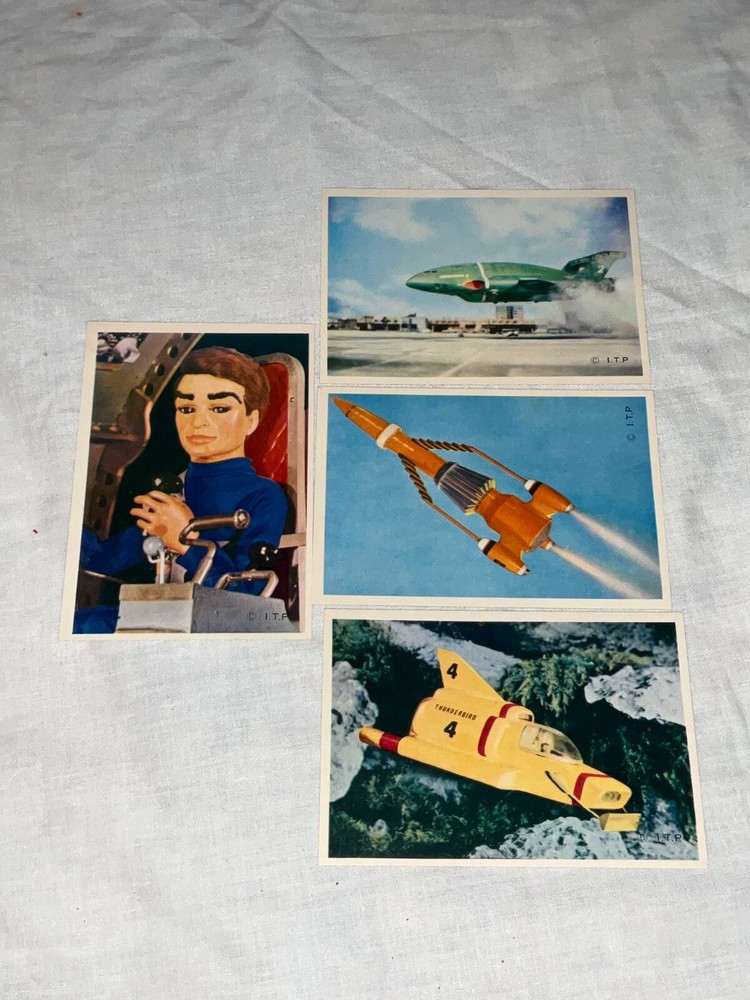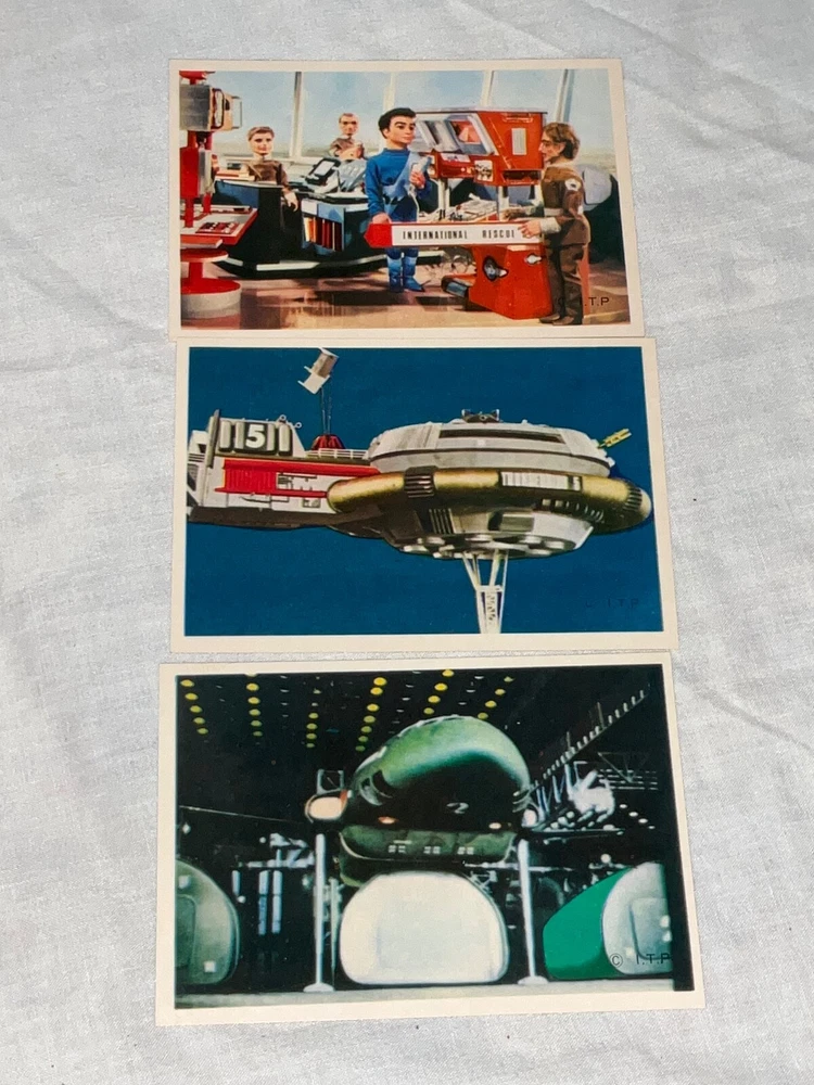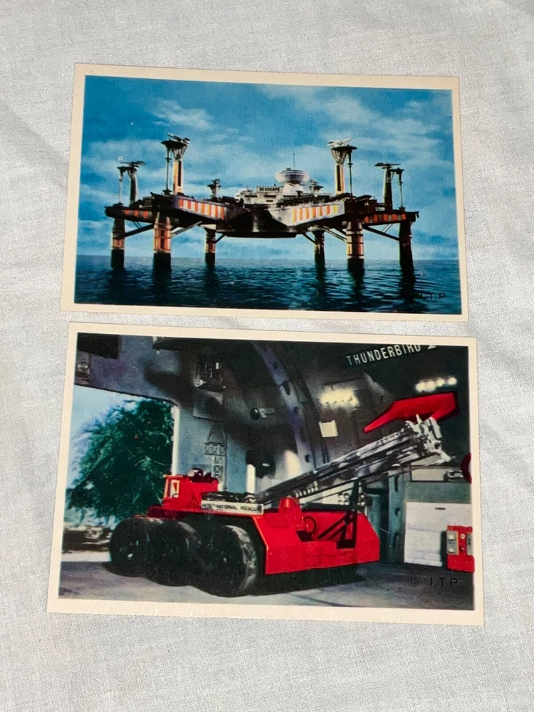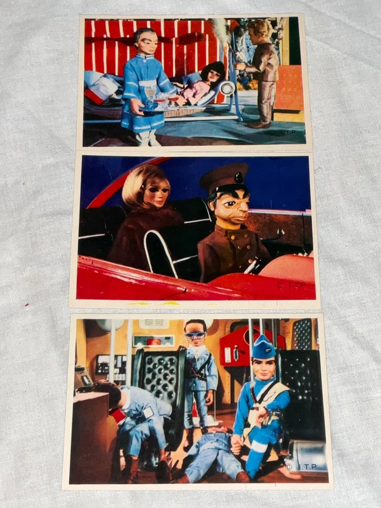 Vintage Thunderbird bromide cards. Made in Japan by Tsuburaya Productions. Year of manufacture not listed but I do believe they are from the 1970s. Cards are minty, nice and sharp, no fading or yellowing, I had them in storage for 20 years, I am not the original owner. I don’t know how many cards are supposed to be in the pack but there are now 18. Questions? Email me! Please check out my other auctions for more bromide cards and stuff from Japan. Thanks for looking!