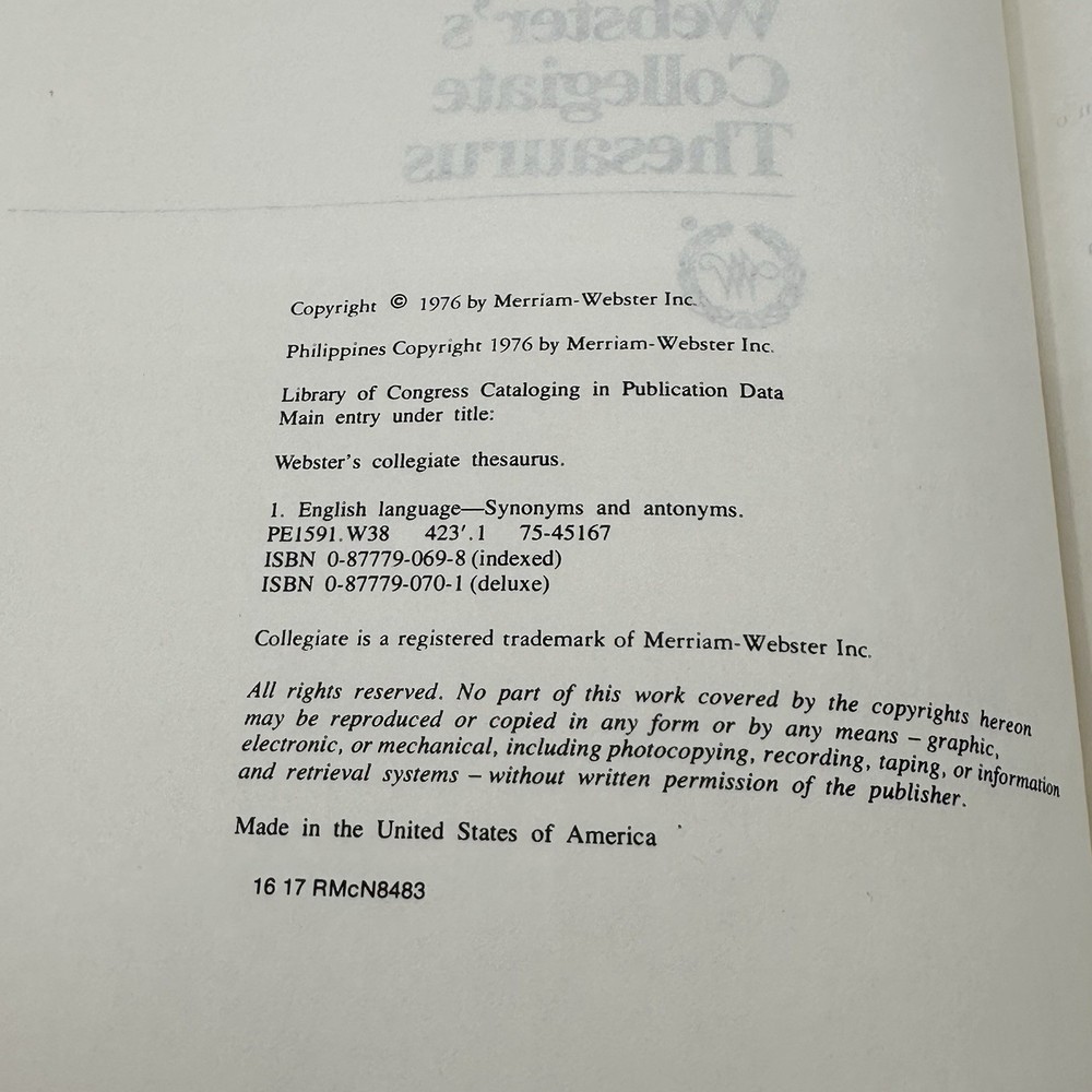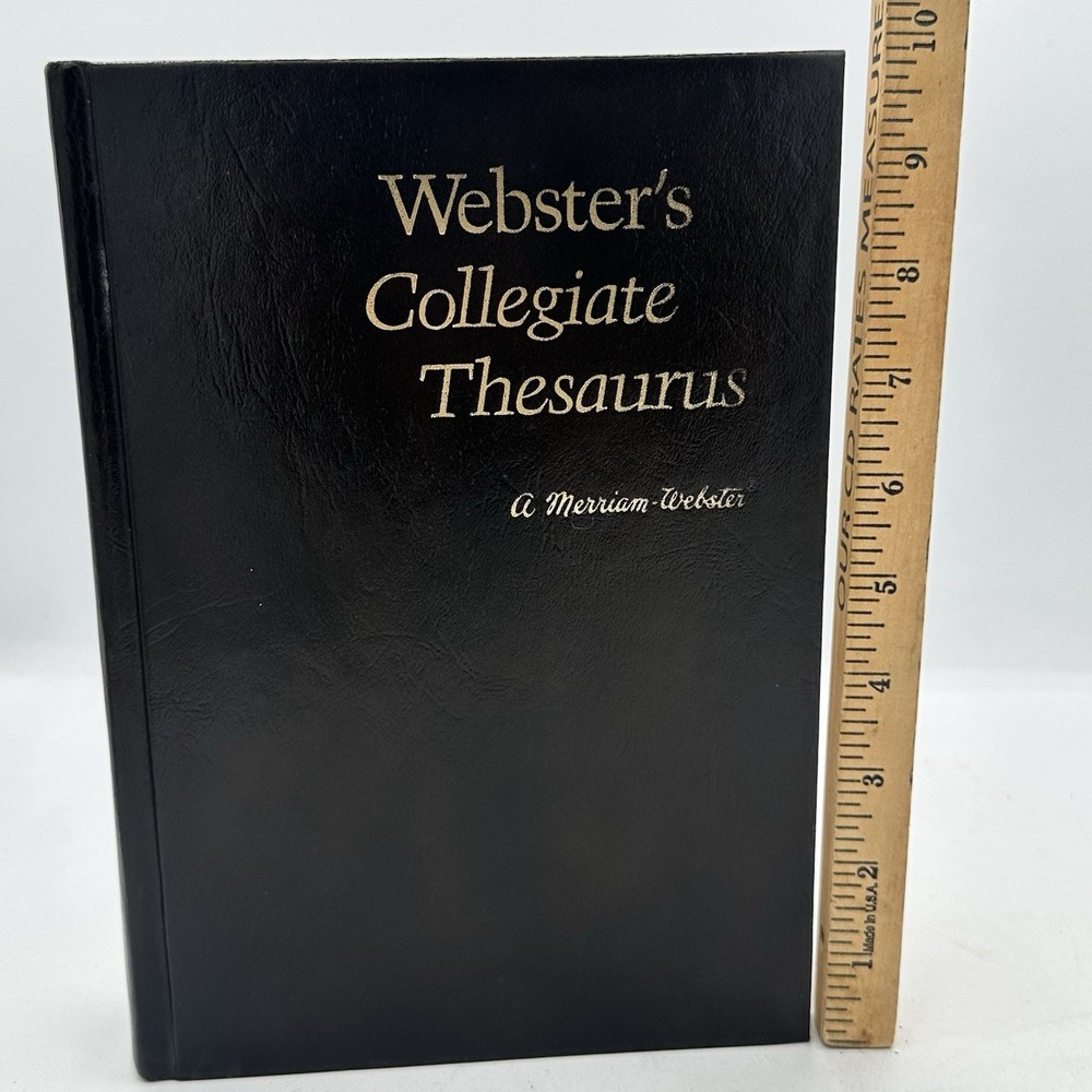 This vintage Webster's Collegiate Thesaurus is a valuable resource for anyone seeking a comprehensive list of words and their meanings. Published in 1976 by Merriam-Webster, this leather-bound thesaurus is an advanced level reference book that is perfect for those who want to expand their vocabulary and improve their writing skills. With over 100,000 words and definitions, this thesaurus is an essential tool for students, educators, and anyone who wants to improve their language skills. The book is in English and is a great addition to any reference collection. Get your hands on this classic book today and take your writing to the next level!