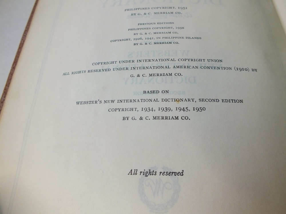 Vintage Webster's New Collegiate English Dictionary Merriam Webster Printed 1951 Leather Bound Tabbed Thin Paper Very Nice Dictionary Fast Shipping...