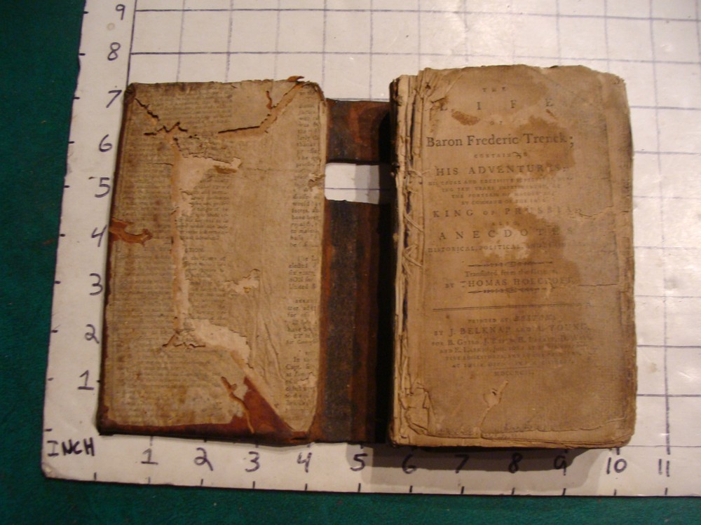 VIEW MY OTHER ITEMS ON EBAY Welcome to another Great item from SYOTTOYS and thanks for stopping by, after you have looked at this one, why not sit back, grab your favorite drink and spend some time checking out all the wonderful things I have to offer. just click above. but first look below and BID or BUY. NOTE: I will always combine items to save you shipping cost. but I DON'T end auctions early, and offers will be ignored if they are not reasonable. DESCRIPTION OF ITEM This is a neat book, SCARCE, in the shape shown, THE LIFE OF BARON FREDERIC TRENCK; contains his adventures; his cruel and excessive suffering during the ten years of imprisonment at the fortress of Magoleburg. by command of the late KING OF PRUSSIA also anecdotes, Historical, Political and Personal, translated from the German by Thomas Holcroft. printed at Boston by J. Belknap and A. Young 1792, the front cover is not connected to the book, and someone removed the little piece on the spine that would have had the name of the book, there is some sticking connecting the first part of the book together. some spotting, old bug damage at the very end. SCARCE, 417 PAGES. THE PHOTOS GIVE YOU ARE GREAT SAMPLING OF WHAT TO EXPECT OF THE BOOK. the scale behind the item is in inches. I pack in cardboard for your items protection. I PACK BETWEEN CARDBOARD FOR PROTECTION ---------------------------------------------------------------------------------------------------------------------------------------------------------------------------------------------------------------------------- AS SHOWN, USE EBAYS ZOOM IN FEATURE TO GET A GREAT LOOK AT THE ITEM UP CLOSE, and email me any questions, please. ------------------------------------------------------------------------------------------------------------------------------------------------------------------------------------------------------------------------------ VIEW MY OTHER ITEMS ON EBAY TERMS AND CONDITIONS Paypal users must be verified, and have a confirmed address. Payment must be received within 5 days, or sale is voided, and item may be relisted. Shipping is usually done by USPS or Fed Ex. I may switch shipping carrier and methods at any time. Seller assumes no responsibility with regards to loss, damage of property, or personal injury. Bidder must be 18 years or older to participate in this auction. By placing a bid, you are accepting these terms and conditions. --------------------------------------------------------------------------------------------------------------------------------------------------------------------------------------------------------------------------------- LOCATION-- box ( long rectangle TARGET )
