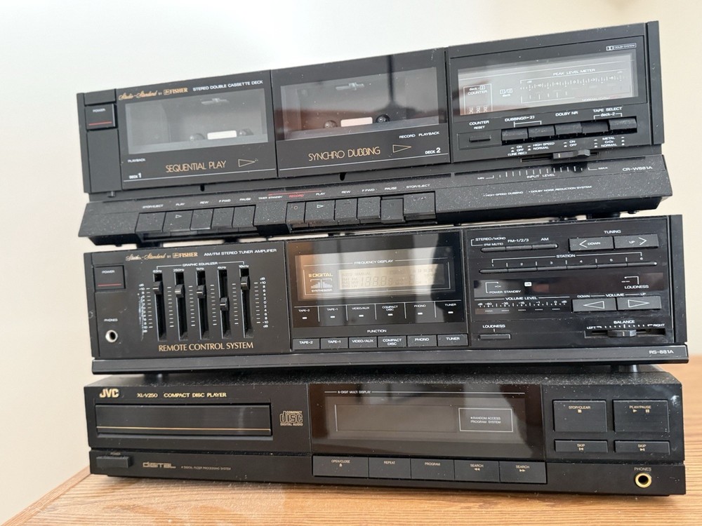 Comes with the Remote, no wires included, in excellent condition just a bit dusty. Vintage JVC XL v250 Compact disc player + Vintage Studio Fisher Tuner + CR-W881...